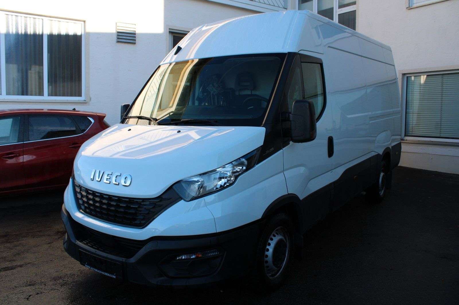 sstattung:Ablagefach auf Armaturentafel mit USB-AnschlussAudiosystem: Digitales Audiosystem (DAB) mit USB und Freisprecheinrichtung BluetoothHecktür (Öffnungswinkel 260 / 270 Grad)KlimaanlageLenksäule (Lenkrad) höhen-/längsverstellbarReserverad in FahrbereifungReserveradhalter zwischen BodenlängsträgerSchmutzfänger vorn und hintenAudio-/Telefonbedienung am LenkradKältekompressor 170 ccmAusstattung:Anhänger-Stabilisierungs-Programm (TSM)Anhängersteckdose VorbereitungAnti-Blockier-System (ABS)Antriebs-Schlupfregelung (ASR)Antriebsart: HeckantriebArmaturentafel Komfort blauAusführung: S-ReiheAuspuffrohr seitlich linksAußenspiegel elektr. verstell- und heizbarBremsassistentDeckenleuchte im LaderaumElektr. BremskraftverteilungElektron. Stabilitäts-Programm (ESP)Fahrassistenz-System: Berganfahr-Assistent (AAS)Federung Hinterachse: ParabelFederung Vorderachse: QuerblattfederFensterheber elektrischFrontscheibe und Seitenscheiben getöntGenerator 210 AGeschwindigkeits-Begrenzeranlage 160 km/hGetriebe 6-GangHarnstofftank (AdBlue): 20 Ltr.Karosserie/Aufbau: Kasten Hochraum ÜberhangKraftstofftank: 70 Ltr.Kühlergrill blauMotor 2,3 Ltr. - 100 kW DieselRadstand 3520 mmRußpartikelfilterSchadstoffarm nach Abgasnorm Euro 6d-TempSchiebetür Lade-/Fahrgastraum rechtsSitze im Fahrerhaus: BeifahrerdoppelsitzTagfahrlichtWartungsanzeigeWegfahrsperreZentralverriegelung mit FernbedienungZul. Gesamtgewicht 3,50 tOriginal Fahrzeug Farbe: WHITE IC 194Diese Daten werden aus der DAT Datenbank übernommen. Es kann keine Haftung für die Vollständigkeit und Richtigkeit übernommen werden.nstiges:Ein VorbesitzerScheckheftgepflegtGepflegtes Nichtraucher-Fahrzeug