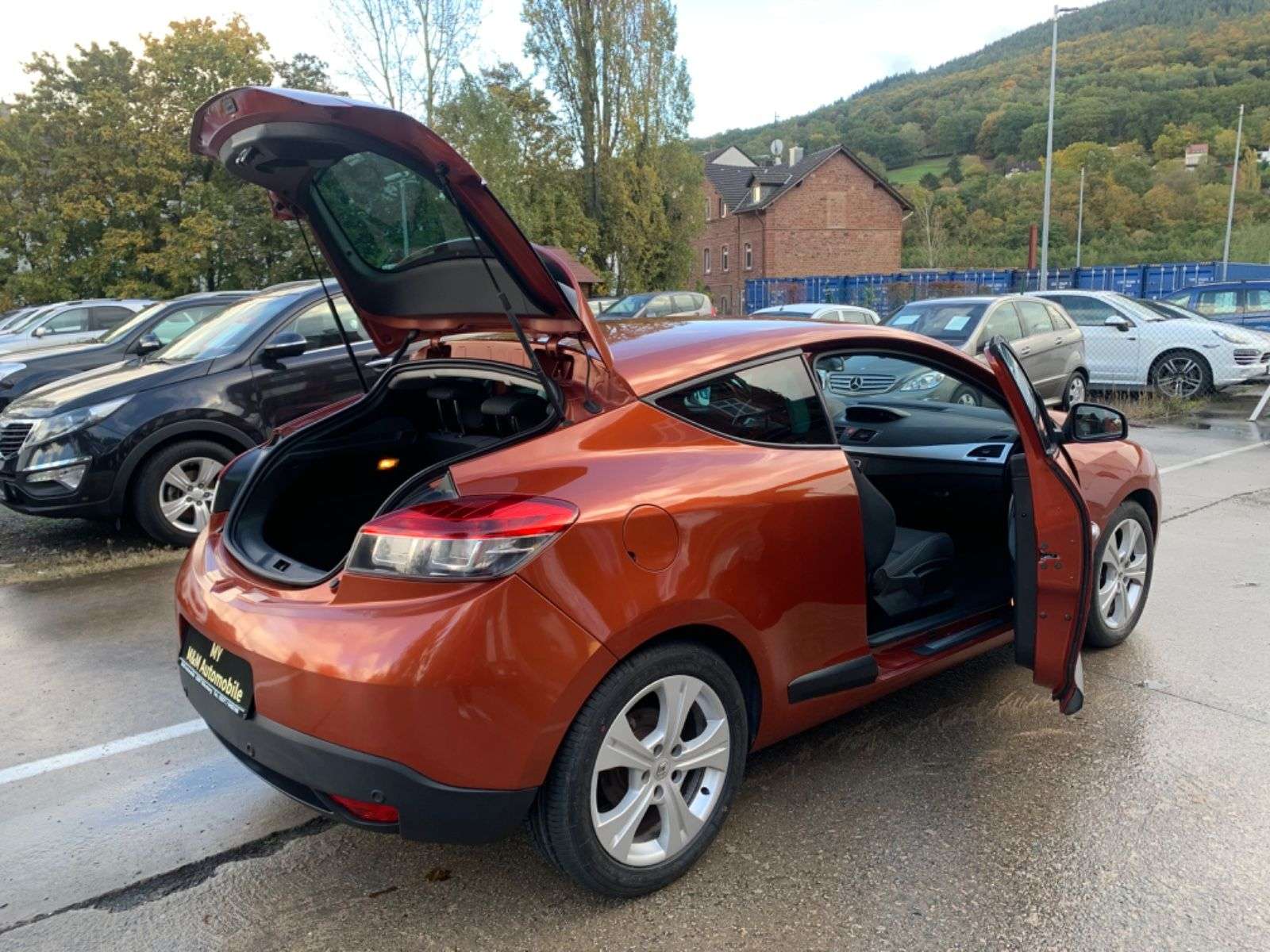 Megane III Coupe DynamiqueAus 1.HandEuro 4 KatalysatorSehr Gepflegter InnenraumTüv bei kauf neuifen nagelneu!!Confort-Paketserverad in FahrbereifungSonderlackierung Metallic Cayenne OrangeKlimaautomatikElektrische FensterheberEinparkhilfe hintenTempomat/GeschwindigkeitregelanlageStoff-SportsitzeFront,Seiten und KopfairbagsAirbag Beifahrerseite abschaltbarschlüssellos Starten / Start/Stop knopfAntischlupfregelung (ASR)Audiosystem: Radio mit CD-Player (MP3-fähig)Außenspiegel elektr. verstell- und heizbarAußenspiegel WagenfarbeAußentemperaturanzeigeBordcomputerBremsassistentEinparkhilfe hintenEinstiegsleisten AluminiumElektr. BremskraftverteilungGurtstrafferZentralverriegelung mit FernbedienungIsofix-Aufnahmen für KindersitzKarosserie: 3-türigLendenwirbelstütze Sitz vorn linksLenksäule (Lenkrad) höhenverstellbarLenksäule (Lenkrad) längsverstellbarAlu-Felgen mit neuen ifenMittelkonsoleMotor 1,4 Ltr. - 96 kW TCERaucher-PaketRücksitzbank geteilt/klappbar (1/3-2/3)Sitz vorn links höhenverstellbarSitz vorn rechts höhenverstellbarSitzbezug / Polsterung: StoffSitze vorn mit Anti-Submarining-AirbagSport-FahrwerkSteckdose (12V-Anschluß) 2.SitzreiheTürgriffe außen verchromtUntersteuerungskontrolle (USC)Verglasung hinten abgedunkeltInzahlungnahme und Finanzierung ohne Anzahlung möglich.Monatliche Rate ab 199 Euro bei einer Vollfinanzierung.Verkauf im KundenauftragBitte keine E-Mails da wir aus Zeitgründen keine Beantworten Können.Im Zuge des Verkaufs unserer Fahrzeuge kann es vorkommen das unser Büro kurzzeitig nicht besetzt ist. Bei Interesse an einer Fahrzeugbesichtigung bitten wir Sie daher in jedem Fall um eine Terminvereinbarung.Im Internet gemachte Angaben sind unverbindliche Beschreibungen und stellen keine zugesicherten Eigenschaften dar. Der Verkäufer haftet nicht für Irrtümer, Eingabefehler und Datenübermittlungsfehler. Änderungen sowie Zwischenverkauf vorbehalten.Besonderen Wert legen wir auf eine seriöse Abwicklung. Für weitere Informationen erreichen Sie uns per Telefon wir helfen ihnen gerne.Eine große Auswahl und weitere interessante Gebrauchtwagenangebote finden Sie auf unserer Homepage unter www.Mobile.de/ M-M-Miltenberg.Sie reisen mit dem Zug an, wir holen Sie am Bahnhof gerne ab. (Bahnhof Miltenberg am Main)Öffnungszeiten Mo-Fr. : 10 - 18 Uhr Sa. 10-14 Uhr.Besichtigung und Probefahrt bitte nur nach telefonischer Absprache.Um unseren kompletten Fahrzeug Bestand zu sehen , bitte auf den Button " Händler Homepage " oben rechts klicken ∗Profitieren Sie von unserer 24 Jährigen Berufserfahrung im Automobil An und Verkauf !!!