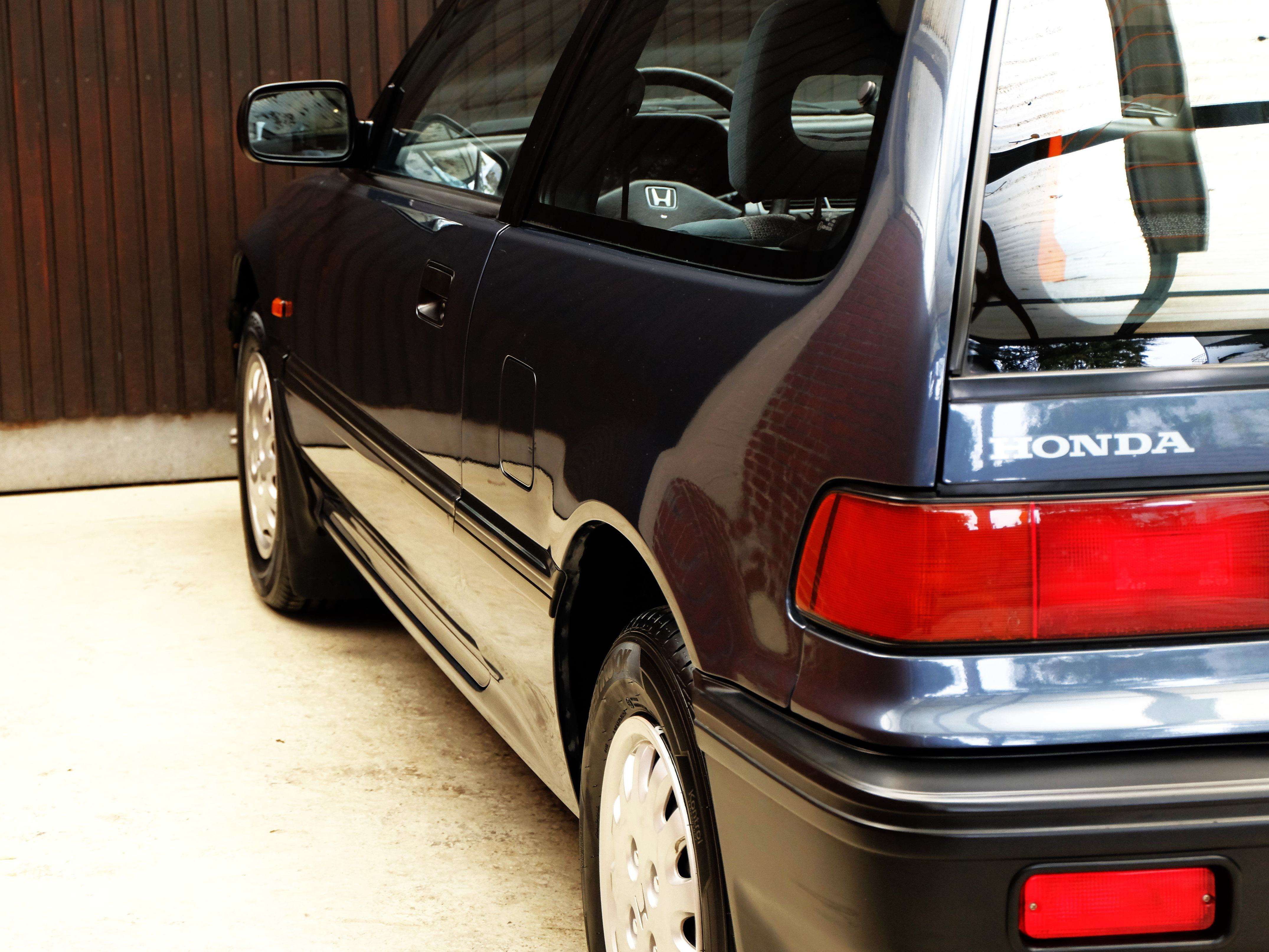 a Civic ist ein Kompaktmodell und wurde in der vierten Generation von 1987 bis 1991 als 3-türer, als 4-türige Limousine und als sportliches Coupe CRX gebaut. Es war ein revolutionär modernes und sportliches Fahrzeug, das ein sehr elegantes, gradliniges sign hatte, besonders die 3-türigen Modelle und die CRX Coupes waren wohlproportioniert und sahen durch die großen Glasflächen und die geringen Überhänge sehr sportlich aus. Sie sahen nicht nur sportlich aus, sondern waren es auch. Ein modernes Fahrwerk in Verbindung mit sehr aufwendigen und modernen Leichtmetall-Motoren mit Einspritzung, geregeltem Katalysator und 16 Ventilen verhalfen den Fahrzeugen zu sehr guten Fahrleistungen, die Fahrwerke mit Einzelradaufhängung an doppelten Querlenkern waren entsprechend ausgelegt und boten große Sicherheitsreserven. Die kompakten 3-türer und CRX fahren sich wie Go-Karts und Dank Servolenkung spielend leicht. Auch nach heutigen Maßstäben fährt sich ein Honda Civic modern und sicher. Im Unterschied zu den heutigen Fahrzeugen ist die Aussicht und Übersicht hervorragend, dadurch wird einem ein großzügiges Platzangebot vermittelt. Die Verarbeitungsqualität war hervorragend und übertraf damals sogar die der deutschen Hersteller. Unser Honda Civic 1.5i-16V ist in die Schweiz erstausgeliefert. Frau Gertrud – Eberle-Fischer geb. 05.03.1926 hat den Honda am 05.06.1991 beim örtlichen Honda Händler Garage P. Schmidfi in Zürich gekauft. Als frisch gebackene Rentnerin bestellte Frau Eberle-Fischer den Honda in Wien Blau Metallic, mit einem 4-Gang Automatik-Getriebe und einem elektrischem Glas-Schiebedach. In der Folgezeit brachte Sie den Civic regelmäßig zur Inspektion zum örtlichen Honda - Vertragshändler. r Civic ist unfallfrei und vollkommen rostfrei. Er hat minimalste Gebrauchsspuren und sieht einem Jahreswagen ähnlich. Er wurde nicht im Winter benutzt, der Innenraum ist neuwertig, der Motorraum und Kofferraum sind unglaublich sauber und sehen aus wie am ersten Tag. Er hat wenige Gebrauchsspuren und vermittelt Jahreswagenfeeling.Alle Bordbücher, Werkzeuge und 4 Schlüssel sind vorhanden. Wir haben an dem Civic nun eine Durchsicht gemacht, neue Reifen montiert und werden noch einen TÜV mit H-Kennzeichen machen, so das er dann nur 192,-- KFZ-Steuer im Jahr kostet und mit einer sehr günstigen Oldtimer Versicherung versichert werden kann. Auch in Umweltzonen darf er einfahren.Ihnen einen solch phantastisch erhaltenen Honda Civic anbieten zu können ist uns ein großes Vergnügen und nicht alltäglich, wir sind davon überzeugt, dass es sich um einen Klassiker mit guten Wertzuwächsen handelt, der richtig viel Freude bereitet und ein zuverlässiger Begleiter ist. Zögern Sie nicht lange, es handelt sich um ein sehr seltenes Angebot, er ist nicht günstig aber richtig gut.Ausstattung:4-Gang-Automatik mit Wandlerüberbrückungelektronische, programmierte Kraftstoffeinspritzung (Hoinda Dual Point Injection)TransistorzündungZahnstangenblenkung mit ServounterstützungGeregelter 3-Wege-Katalysator 94 PSBremskraftverstärkerScheibenbremsen vornStabantenneVon innen verstellbare Außenspiegel Fahrer- und BeifahrerseiteVerbundglas FrontscheibeGetönte Scheiben rundumElektrische ScheibenwaschanlageIntervallschaltung der ScheibenwischerRücksitzlehnen einzeln umklappbarMetallic LackierungHeckscheiben-Wisch-WaschanlageBeheizbare Heckscheibe4-stufiges Heizungs- und BelüftungssystemUmluftschaltungKofferraum und Tankklappe vom Fahrersitz aus entriegelbarHalogenscheinwerfer2 Rückfahrscheinwerfer2 NebelschlussleuchtenAusstellfenster hintenHandbrems-KontrolleuchteTageskilometerzählerDigitaluhrWarnsignal für Lichtabschaltung3-Punkt-Automatik-Sicherheitsgurte vornZwei 3-Punkt-Automatik-Sicherheitsgurte plus 1 Statik-Beckengurt hintenKopfstützen vornKopfstützen hintenSeitlich schwenkbare Sonnenblende vornStoffpolsterTeppichbodenKunstoffinnenkotflügel vornSteinschlagversiegelung an besonders gefährdeten KarosserieteilenHohlraumkonservierungUnterbodenschutzSchmutzfänger vornServolenkungHöhen