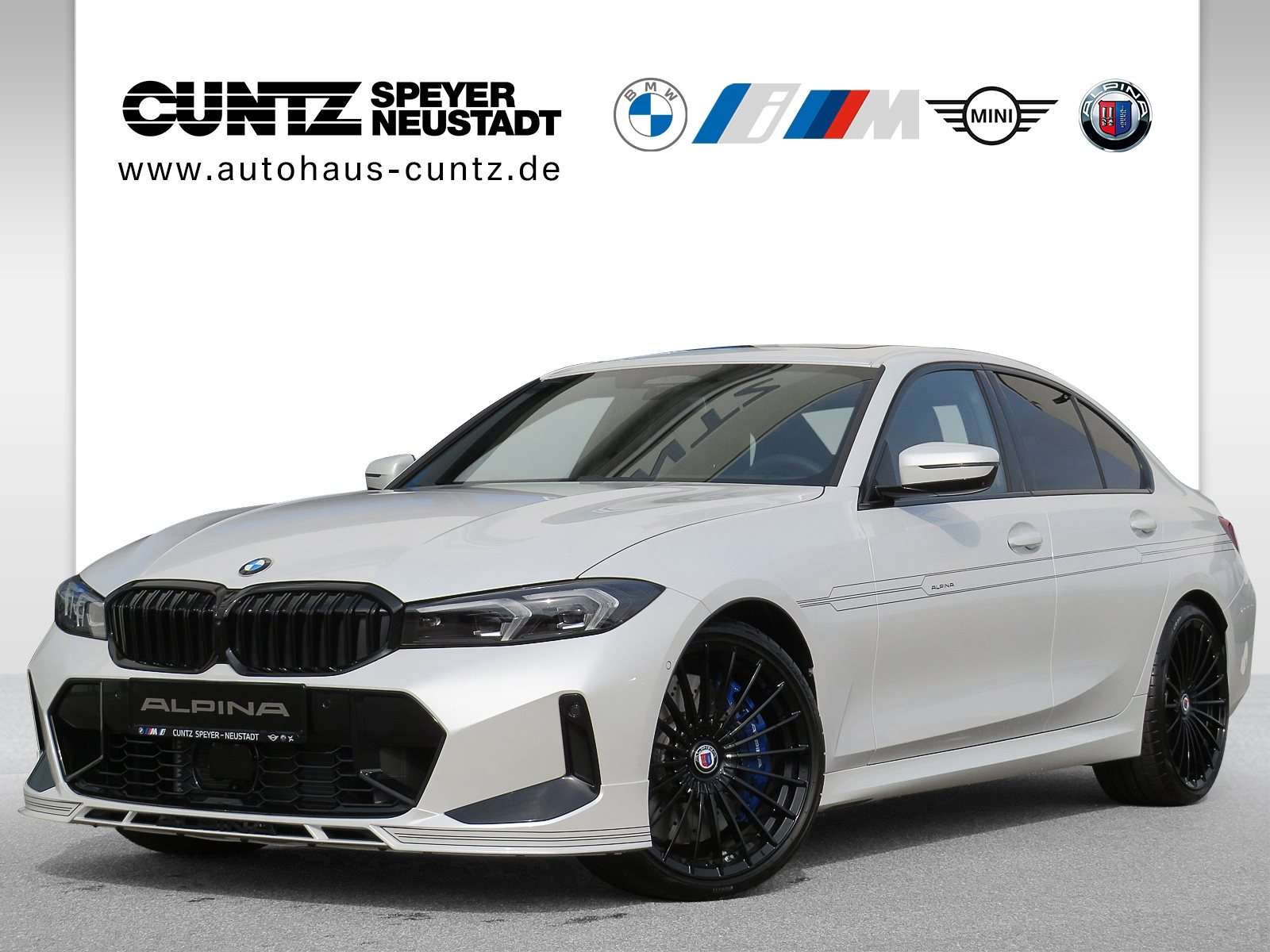 gMerino Schwarz/SchwarzEditionen und PaketeAblagenpaket Connected Package Professional ConnectedDrive Services Antrieb, FahrwerkAdaptives Fahrwerk Aktives Sportdifferential Hochleistungs-Bremsanlage Sport-Automatik Getriebe (8-Gang) mit ALPINA SWITCH-TRONICVariable Sportlenkung Umwelt, cherheitAdaptiver LED-Scheinwerfer Aktiver Fußgängerschutz Alarmanlage Beifahrerairbag Deaktivierung Fernlichtassistent Innenspiegel automatisch abblendend Reifendruckanzeige Komfort, InnenausstattungAkustikverglasung Ambientes Licht Automatische Heckklappenbetätigung Durchladesystem Fondkopfstützen, klappbar Galvanikapplikation für Bedienelemente Innen- und Außenspiegelpaket Interieurleisten 'Carbon Fibre' Klimaautomatik Komfortzugang Lenkradheizung Lordosenstütze für Fahrer und Beifahrertzheizung für Fahrer und Beifahrer tzverstellung, elektr. mit Memory für FahrersitzSonnenschutzverglasung Sportsitze für Fahrer und Beifahrer FahrerassistenzDriving Assistant Professional Gesetzlicher Notruf Parking Assistant Plus TeleServices MultimediaBMW Live Cockpit Professional DAB Tuner Harman Kardon Surround Sound System ExterieurALPINA Heckspoiler (in Wagenfarbe lackiert) Anhängerkupplung mit schwenkbarem Kugelkopf und elektrischer EntriegelungGlasdach, elektrisch Lehnenbreitenverstellung FahrerseiteRäderRadschraubensicherung Reifenpannenset IndividualumfängeBMW Individual Leuchten Shadow Line Dachhimmel Anthrazit, BMW Individual Hochglanz Shadow Line mit erweiterten UmfängenInstrumententafel lederbezogen Shadow Line Hochglanz, BMW Individual SonstigesAblage für Wireless ChargingActive Guard Plus ALPINA CLASSIC 20" Schmiederad, lackiert in SchwarzEndrohrblenden ALPINA, SchwarzMineralweiß metallic SWITCH-TRONIC Schaltwippen aus Vollaluminium, CNC gefrästVolllederausstattung Merino SchwarzGute Fahrt Paket Irrtümer und Zwischenverkauf vorbehalten