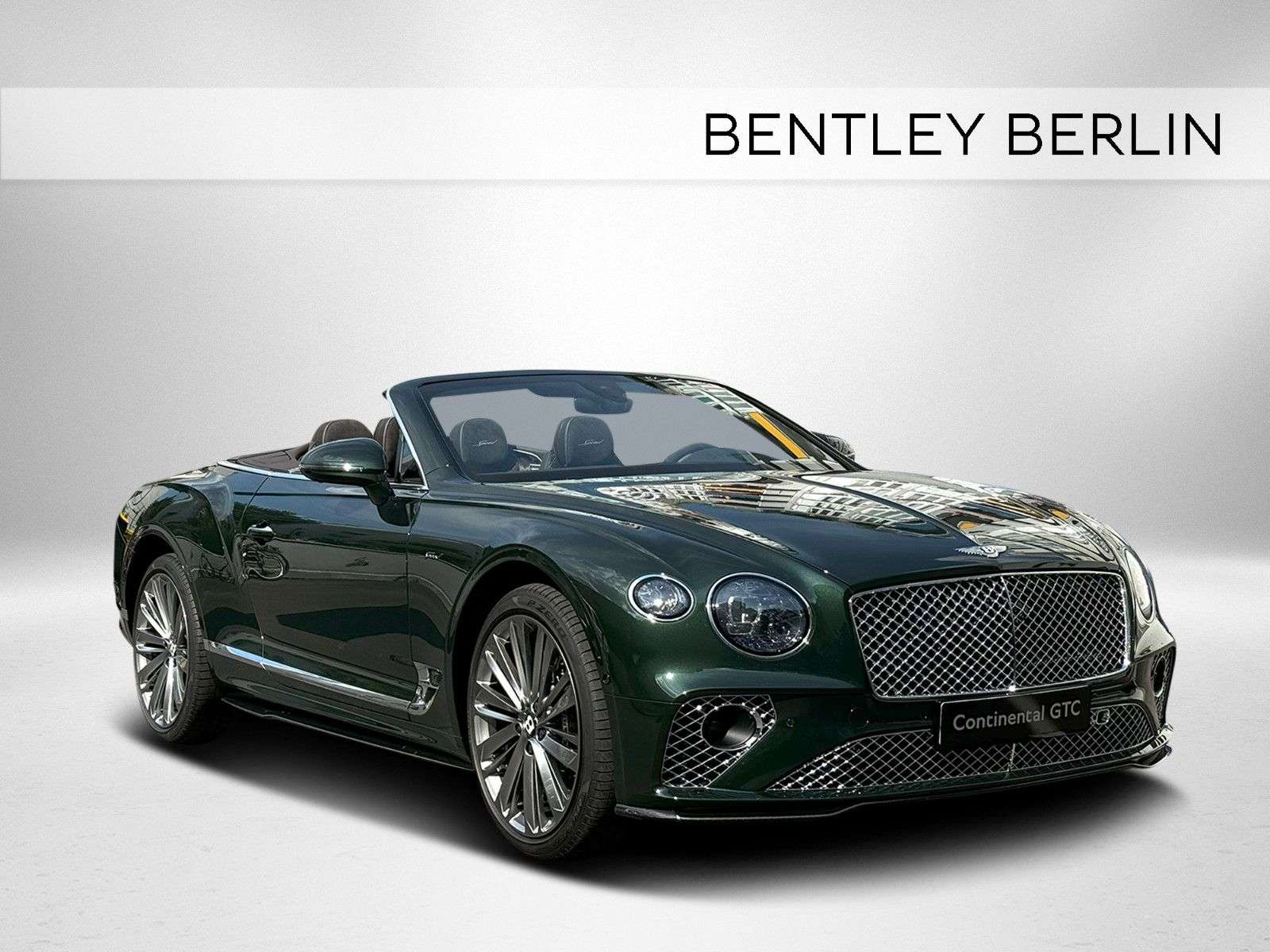 D - Sonderlackierung - NAIM Sound System - Rotating Display -Außenfarbe: Cumbrian GreenVerdeck: Dark BrwonInnenfarbe: Linen mit Burnt OakDekor: Engine Turned Aluminium - hellAUSSTATTUNG :Sonderlackierung "Cumbrian Green"Dekoreinlagen Engine Turned Aluminium- hell Kontrastkeder für Fußmatten in "Linen"LED Welcome LampsKomfort Spezifikation für VordersitzeGrill und untere Lufteinlässe hell verchromtHochflorige Teppichmatten vornNAIM for Bentley Sound System Bentley Rotating Display TV-Tuner GaragentoröffnerValet Parking SchlüsselWelcome Lighting BegrüßungslichtVerdeck in dunkelbraun " Dark Brown"Kontrastnähte in "Linen"22" Speed Felgen - dunkel getöntLuft IonisatorInduktive TelefonlademöglichkeitMood Lighting - Ambientebeleuchtung Steinschlagschutzfolie für Vorderwagen Styling Specification - Carbon Exterior Paket Touring Specification Head-Up Display, Spurhalteassistent, Night Vision - Nachtsichtassistent, Stauassistent, Bentley Safeguard Plus - Pre-Safe-Bremsfunktion, Adaptive Cruise Control (ACC) Änderungen, Irrtum sowie Zwischenverkauf vorbehalten. BENTLEY BERLIN
