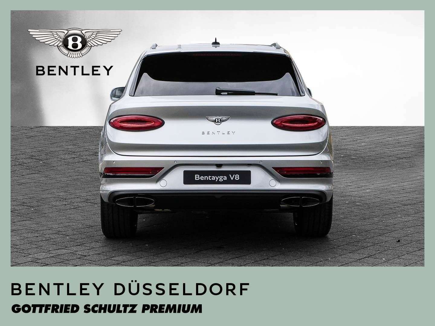 des Fahrzeuges: DüsseldorfBentley Bentayga V8NeufahrzeugFarbkombination:Außenfarbe: Moonbeam (silber)Hauptleder: Beluga (schwarz)Zweitleder: Beluga (schwarz)Furnier: Piano BlackSonderausstattung:Extended Range Lackierung in Moonbeam22“ Leichtmetallrad im 5-Speichen-Design "Directional", schwarz lackiertBlackline SpecificationTouring Specification- ACC – Abstandregeltempomat- Kollisionswarnungssystem „Bentley Safeguard Plus“- Head-Up Display- Spurhalteassistent- Nachtsichtassistent „Night Vision“- auassistent „Traffic Assist“Furnier in Piano BlackKomfortausstattung für die VordersitzePrivacy Glas - getönte Heck- und hintere Seitenscheiben3-Speichen Lederlenkrad, 1-farbig, beheiztAmbientebeleuchtunggestickte Bentley-Embleme auf den SitzenSportpedalerie hochflorige Fußmatten mit Ledereinfassung vorne und hintenBentley Dynamic Ride"Bang & Olufsen for Bentley" Highend AudiosystemLED Welcome Lamps - BegrüßungslichtGaragentoröffner, 3-fachBatterieladezustanderhaltungsgerät...Änderungen, Zwischenverkauf und Irrtümer vorbehalten.