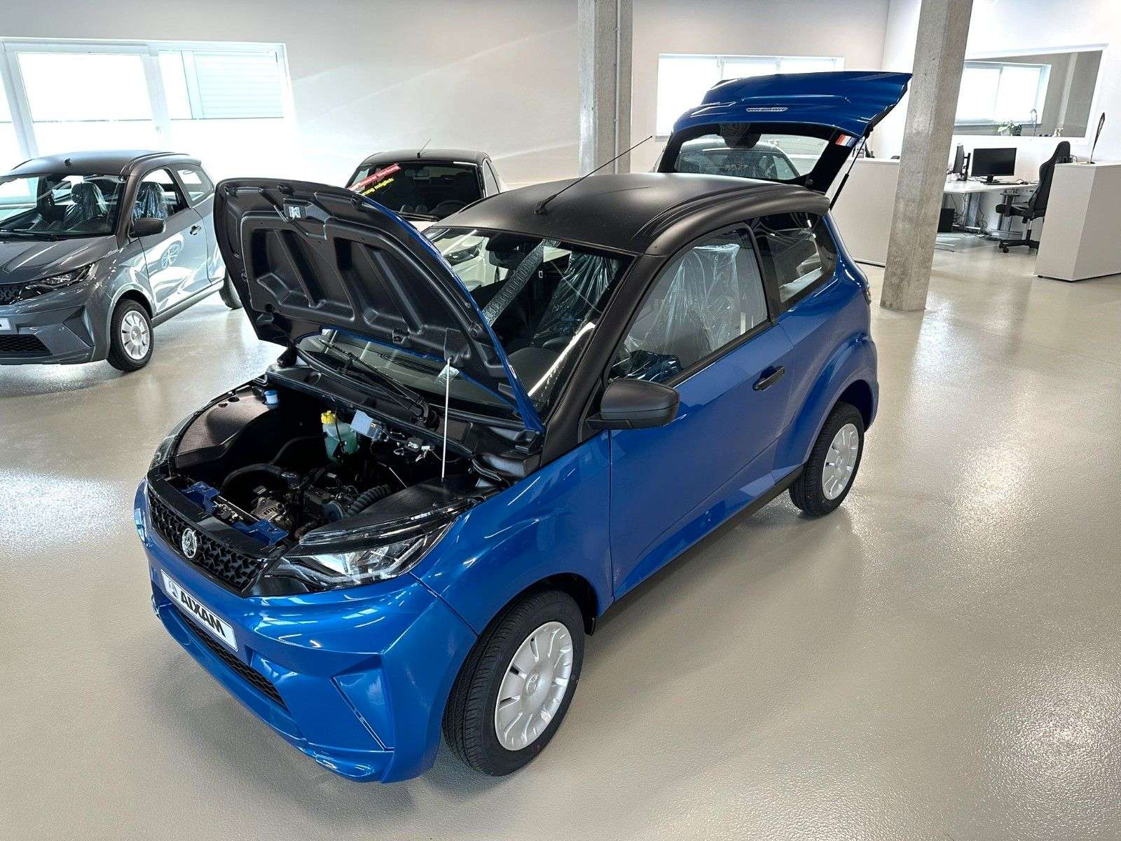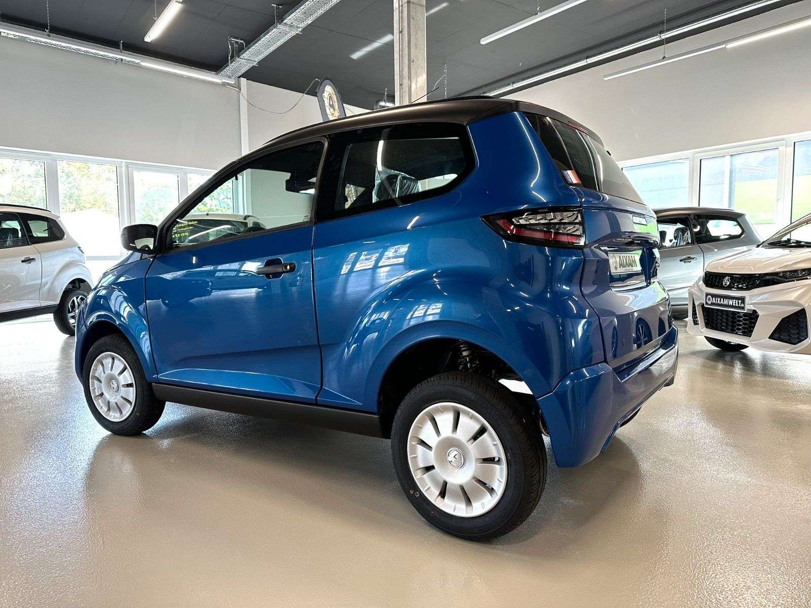 BITION CROSSLINE PACK saphirblauAuthentisch mit Ambition pur!ab 80,-€ monatlich möglich Junior Finanzierung mit oder ohne AnzahlungLaufzeit flexibel, Ratenhöhe flexibel, Anzahlung flexibel ganz nach Ihren Bedürfnissen angepasst*Gern verkaufen wir Ihr Fahrzeug nach der Laufzeit für Sie wiederXAM Leicht-Auto-Mobil• Kein TÜV, Keine HU, Keine Steuer, Zulassungsfrei• Fahren mit dem Mopedführerschein AM ab 15 Jahren• Nur Mopedkennzeichen notwendig -Vollkasko / Teilkasko / Haftpflicht möglichXAM AMBITION CROSSLINE PACKSerienausstattung ohne Aufpreis *siehe aktuelle PreislisteSerienausstattung Aussen• Außenspiegel links und rechts mit erweitertem Sichtfeld von innen einstellbar,• Doppelarmscheibenwischer,• Impulsblinker,• LED-Nebelschlussleuchten,• LED-Tagfahrlicht im Scheinwerfer integriert,• LED-Rückfahrscheinwerfer,• Scheiben getönt, • Verstärkte Türen,• Verstärkte vordere und hintere Stoßfänger,• Voll-LED-Frontscheinwerfer,• Voll-LED-RücklichtSerienausstattung Innen• Ablagefach in Türen & Armaturenbrett auf der Fahrerseite,• Gepäckraumabdeckung (Hutablage) und Gepäckstopp,• Haltegriff Beifahrerseite,• Handschuhfach mit Münz- und Getränkehalter,• Innenbeleuchtung LED,• Kofferraummatte in Stoff,• Kopfstützen in Höhe einstellbar,• Luftausströmer einstell- und regulierbar mittig,• Rückspiegel mit Abblendfunktion,• Sicherheitsgurte Automatik,• Sitz Fahrer in Längsrichtung und Rückenlehne einstellbar,• Sitze in Stoff,• Sonnenblende mit Schminkspiegel Beifahrer,• Steckdose 12V (bei Tablet Radio ersetzt durch USB Anschluss)Audio• Autoradio mit MP3/RDS/AUX/USB /DAB+/Bluetooth ohne CD,• 2 Lautsprecher Ø 130 mmWeitere Serienausstattung• Automatische Verriegelung der Türen bei 5 km/h,• Dritte LED Bremsleuchte,• Einschlüsselsystem Türen/Zündschloss/Tankdeckel,• Elektrische Heckklappenöffffnung mit Fernbedienung und externer Bedienung,• Fensterheber elektrisch,• Heckscheibenheizung mit automatischer Zeitbegrenzung,• Heizung-Lüftung-Enteisung dreistufig,• Lenkradschloss,• Scheibenwischer vorne dreistufig inklusive Intervallschaltung• Scheibenwaschanlage mit automatischer Wischfunktion,• Signalwarnton „Licht an“ ,• Türverriegelungs-/Entriegelungssteuerung am Armaturenbrett,• Warnblinkanlage mit automatischer Aktivierung bei Vollbremsung,• Wegfahrsperre bei eingelegtem Gang,• Zentralverriegelung mit Fernbedienung und optischer Blinker-Rückmeldung,• Zentralverriegelung mit Schlüssel einklappbarDekorelemente• Armaturenbrett- und Türdekor innen in Kunststoff schwarz,• Außenspiegelschalen in schwarz glänzend,• Dach, A-Säule und ggf. Heckspoiler in schwarz samt,• Innenverkleidung A- und B Säule in Kunststoff, • Kühlergrill Design Sternen schwarz glänzend,• Türgriffe außen in schwarz samt Kombiinstrument• Akustische Warnanzeige für Bremsbelagverschleiß,• Anzeige des eingelegten Gangs D-N-R, • LCD-Bildschirm 1 Zoll,• Tankreserveanzeige mit Nadel und Warnanzeige,• Wartungsanzeige,• 7 verschiedene Warnleuchten,• 9 verschiedene LichtanzeigenReifen und Felgen• Stahlfelgen mit Radzierblenden, Reifen 145/70R13• Reifenfüllflasche (nicht bei Option Ersatzrad)Optionale Zusatzausstattung (*gegen Aufpreis)• Aixam Connect: Tablet Radio mit 6,2’’ Touchscreen Bluetooth/USB/DAB/Rückfahrkamera• Alarmfunktion für Zentralverriegelung• Alufelgen, Reifen 155/65R14, “Rotor-Style” silber• Ersatzrad, Reifen 145/70R13 inkl. Wagenheber und Radschlüssel• Klimaanlage• Trennwand Fahrgastzelle / Kofferraum• Warmluftheizung dieselbetrieben (zusätzlich)*Fahrzeug kann Zusatzausstattung mit Aufpreis enthalten*Zusatzausstattung siehe aktuelle Preisliste*Wir liefern Ihr Fahrzeug gern inklusive Transportversicherung direkt bis vor die TürBesichtigung und Probefahrt nach vorheriger Terminvereinbarung jederzeit möglich.XAMWELT - die Welt der Leicht-Auto-Mobilewww.aixamwelt.dePreis zzgl. optionaler Zusatzausstattung, Extras und ZubehörIrrtümer, Zwischenverkauf und Änderungen vorbehaltenzzgl. 890,- € Überführung Frankreich - Deutschland
