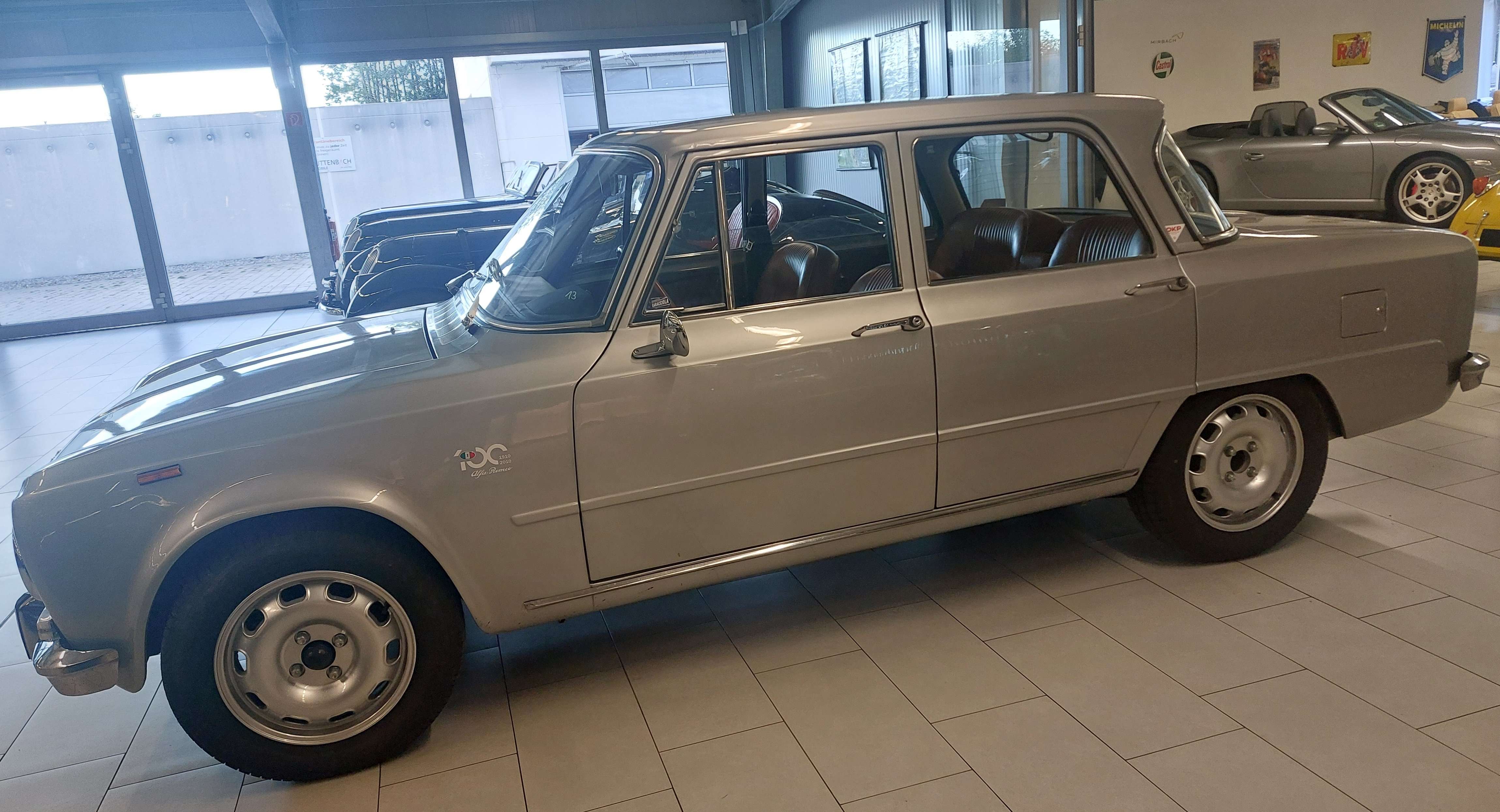 r 2023 / 2024 wurde die Technik im Wagen umfassend revidiert und restauriert, dazu folgende Einzelheiten:Motor überholt und optimiert, dafür:Motor komplett zerlegt, gereinigt und überprüft. Zylinderkopfgeplant, Ventilsitze erneuert, Ventile eingeschliffenMotor mit neuen Teilen zusammengebautSteuerzeiten und Ventile eingestelltAlle Dichtungen erneuertPleuel anpassen lassenDazu wurden u.a. folgende Neuteile verbaut:SPORTKOLBEN, ZYLINDERLAUFBUCHSEN, MOTORDICHTSATZ, ZKD ALFA, HAUPTLAGERSATZ, PLEUELLAGERSATZSATZ, SPORTNOCKENWELLE, VENTILFÜHRUNG, SCHWUNGRAD, STEUERKETTE UNTEN, STEUERKETTE MOTORAUFHÄNGUNG 1300-2000 NORD AUS, MOTORAUFHÄNGUNG 1300-2000 NORD EIN, ABDECKUNG BENZINPUMPEN, UMBAU BENZINPUMPE, SATZ KÜHLWASSERSCHLÄUCHE, VENTILFEDER SATZ, PLEUELMUTTER, KUPPLUNGSATZ, H SCHAFT PLEUELSATZ, SIMMERRING KW HINTEN, SIMMERING KW VORNE, ANLAUFSCHEIBE KETTENRAD, KEIL KETTENSPANNER, SCHRAUBE KETTENSPANNER, FEDER KETTENSPANNER, SATZ GUMMI REAKTIONSDREIECK, 123 VERTEILER ALFA, KURBELWELLE 1600 TAUSCH, SILIKONDICHTMITTEL, AUSLAßVENTIL, SATZ ANSAUGFLANSCHE ALU, WASSERPUMPE, SAUGROHR ALFA, STEHBOLZEN, SCHEIBE, HOSENROHRDICHTUNG, SICHERHEITSGURT GIULIA, 2-PUNKT SICHERHEITSGURT, BENZINFILTER, ÖLFILTER FT5682, ZÜNDKERZE BPR9EIX, ÖLDRUCKSCHALTER, HOCHLEISTUNGSGETRIEBEÖL, HEIZVENTIL 1.SERIE, HEIZZUG, DÜSENSATZ WEBERVERGASER, RÜCKZUGFEDER KIT Vergaserumbau auf Weber Vergaser (Originalvergaser undicht und schlechteinstellbar passend zu verbauten Komponenten)Motor eingefahrenÖlwechsel nach Einlaufen des MotorsHeizung in stand gesetzt, neues Heizungsventil eingebaut, dafür: Heizungskasten zerlegt, gereinigt und Heizungskühler gespült.123 Verteiler + Gurte für Alfa BertoneBremsflüssigkeit erneuert, dazu System entlüften.Kupplungsnehmerzylinder inkl. Anschlußschlauch gewechselt.Regler nach Herstellerangben eingestellt 2x Leitung, Kabelanschlüssel, Spannungsregler und D+ Klemme erneuert.Spannungsregler lackiert und restauriert, Löcher für Platzierunggebohrt. Scheibenwaschpumpe und Schlauchstück erneuert.Neue Bremsen verbaut---Probefahrt und Sichtprüfung des Fahrzeuges auf der Hebebühne sind selbstverständlich nach kurzer Absprache möglich.Als versierter Fachbetrieb verfügen wir über eine eigene Werkstatt.Unser erfahrenes und speziell geschultes Mechaniker-Team steht bereit für Service, Reparaturen und individuelle Änderungswünsche am Fahrzeug.Alle unsere Verkaufsfahrzeuge finden Sie gesammelt auf unserer homepage unter www.mirbach.deWir freuen uns auf Sie!