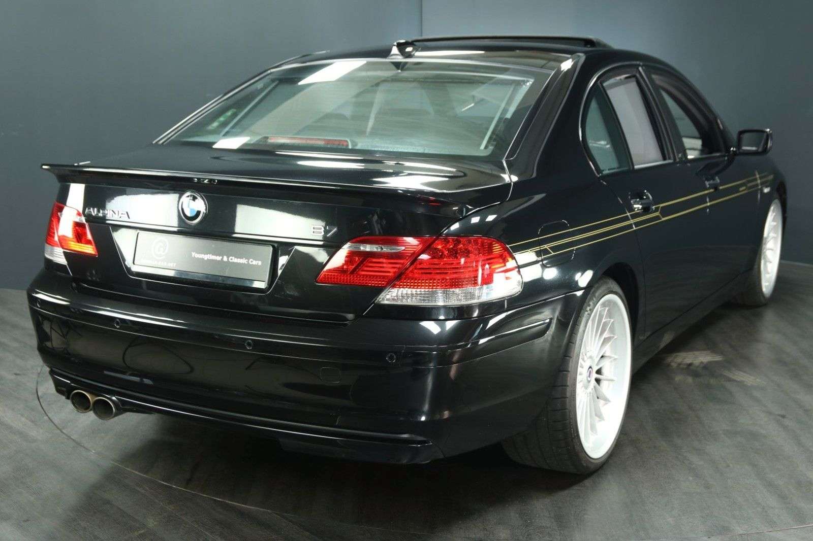 bungDieser Alpina B7 war stets in Deutschland zugelassen. Der aktuelle Eigentümer, in dessen Auftrag wir den B7 anbieten, besitzt das Auto seit 2019 und hat lediglich etwa 3.000 Kilometer mit ihm zurückgelegt.Der Zustand des Alpina ist einfach außergewöhnlich gut. Erheblich besser, als man es bei einem bald zwanzigjährigen Auto erwarten könnte.Der gesamte Innenraum überzeugt durch einen beinahe unbenutzt wirkenden Zustand. Das Leder duftet ausgesprochen verführerisch ...Für weitere Fragen und Informationen zu diesem Alpina oder für einen sichtigungstermin rufen Sie uns gern an oder schreiben uns eine E-Mail. Telefon: 0 46 24 - 803 1933E-Mail: niels.baumann@german-car.net BordmappeDie original Alpina Bordmappe aus schwarzem Leder ist erhalten. Darin befinden sich:die triebsanleitung von BMWdie Zusatzbetriebsanleitung von Alpinadas Verzeichnis der BMW Service-Stützpunkte (Europa)die Pflegehinweisedas originale Alpina ServiceheftIn diesem Scheckheft sind folgende Einträge zu finden:Übergabedurchsicht vom 8.5.2006 (Einlegerpapier)Einfahrkontrolle vom 05.07.2006 bei 2.577 Kilometern (BMW Maintal)Service am 18.11.2009 bei 18.971 Kilometern (BMW Maintal)Service am 26.09.2013 bei 28.539 Kilometern (BMW Wiesbaden)Service am 04.07.2014 bei 43.558 Kilometern (BMW Wiesbaden)Service am 07.11.2014 bei 53.437 Kilometern (BMW Wiesbaden)Service am 08.05.2015 bei 61.131 Kilometern (BMW Wiesbaden)Service am 14.09.2016 bei 70.073 Kilometern (Alpina Buchloe)Service am 02.05.2017 bei 71.397 Kilometern (Alpina Buchloe)Service am 03.09.2018 bei 74.423 Kilometern (Alpina Buchloe)Zusätzlich verfügen wir über folgende Dokumente:TÜV Gutachten vom 09.05.2006 bei 0 Kilometern (Neuwagenabnahme)Abgasuntersuchung bei 27.09.2013 bei 28.538 KilometernDekra richt vom 27.09.2013 bei 28.538 KilometernService Arbeitsblatt vom 07.11.2014 bei 53.437 KilometernService Arbeitsblatt vom 08.05.2015 bei 61.129 KilometernService Arbeitsblatt vom 13.05.2015 bei 61.617 KilometernTÜV richt vom 19.05.2015 bei 61.880 KilometernServicerechnung vom 14.09.2016 bei 70.073 KilometernServicerechnung vom 02.05.2017 bei 71.397 KilometernTÜV richt vom 07.08.2017 bei 74.407 KilometernServicerechnung vom 03.09.2018 bei 74.423 KilometernFahrzeugbewertung vom 13.08.2019 bei 76.962 KilometernTÜV richt vom 08.10.2019 bei 77.342 KilometernServicerechnung vom 11.08.2020 bei 78.335 KilometernGTÜ richt vom 18.10.2021 bei 78.657 KilometernTÜV richt vom 14.11.2023 bei 79.069 KilometernAusstattungAusgestattet ist unser Alpina B7 E65 ausgesprochen umfangreich. Er besitzt:AutomatikSchiebehebedach in GlasausführungKlimaautomatikWurzelholz4 elektrische FensterheberRadio mit CD-Wechsler undNavigationsystemelektrisch verstellbare Außenspiegelelektrisch verstellbarer Sitz vorn links mit Memoryelektrisch verstellbarer Sitz vorn rechts mit MemorySitzheizungMittelarmlehne vorn und hinten, jeweils mit FachFreisprecheinrichtunggetönte ScheibenMultifunktionslenkradDoppelairbag und Seitenairbags in den vier TürenServoschließungAlpina FußmattenPompadourtaschen an den Rückenlehnenelektrische Rollos in den FondtürenHeckrollo elektrischDachhimmel in schwarzKopfstützen im FondAlpina LeichtmetallfelgenSpiegel im Dachhimmel des Fonds, ausklappbarelektrisch verstellbare LenksäulePark Distance ControlReifendruckkontrolleKofferraumdeckel schließt und öffnet elektrischReserverad (Leichtmetallfelge)Alpina DekorInnenspiegel automatisch abblendendNebelscheinwerferBi-XenonscheinwerferScheinwerferreinigungsanlageetc. etc.Für weitere Fragen und Informationen zu diesem phantastischen Alpina B7 oder für einen sichtigungstermin rufen Sie uns gern an oder schreiben uns eine E-Mail.Telefon: 0 46 24 - 803 1933E-Mail: niels.baumann@german-car.netZwischenverkauf und Irrtümer für dieses Angebot sind ausdrücklich vorbehalten. Die Fahrzeugbeschreibung dient lediglich der allgemeinen Identifizierung des Fahrzeuges und stellt keine Gewährleistung im kaufrechtlichen Sinne dar. Ausschlaggebend sind einzig und allein die Vereinbarungen in der A