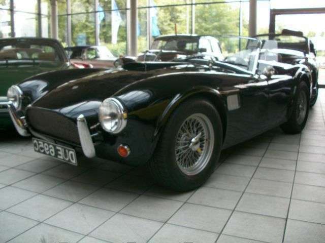 ca. 200 PSlackierte SpeichenfelgenFahrwerk MG-BSmith InstrumenteSide-Screens aus EchtglasWerksbau von BRADieses schwarze Ungetüm ist von einem Rennwagen aus der legendären und erfolgreichen amerikanischen Rennscene kaum zu unterscheiden kaum zu unterscheiden. So sahen die siegreichen Renn-Cobras aus, die alle damaligen Konkurrenten gnadenlos geschlagen haben. Damals wurde dann durch Initiative von Enzo Ferrari das komplette Renn-Reglement geändert, da alle anderen Rennwagen und besonders Ferrari völlig chancenlos waren und alles, was es zu gewinnen gab, auch souverän gewonnen haben. Diese hier angebotene Version von der Rennwagen-Schmiede ,,BRA“ verkörpert perfekt das Erscheinungsbild und die Leistung dieses historischen Kult-Fahrzeuges, ist noch zugelassen und kann sofort mitgenommen werden. (Ganz nach dem Motto: ,,Es gibt kein schlechtes Wetter – es gibt nur unpassende Kleidung). Trotzdem hat dieser Wagen auch noch ein wetterfestes Verdeck, was allerdings ab 160 km/h sowieso wegfliegt.Wenn Sie weitere Oldtimer suchen die wir im Internet anbieten, googeln Sie einfach „Michael Fröhlich mobile.de“. Fertig! Telefonischer Kontakt wird sofort bearbeitet. E-Mails dauern etwas länger. (Bitte eigene Telefonnummer angeben) Verkauf im Kundenauftrag! Irrtümer vorbehalten.