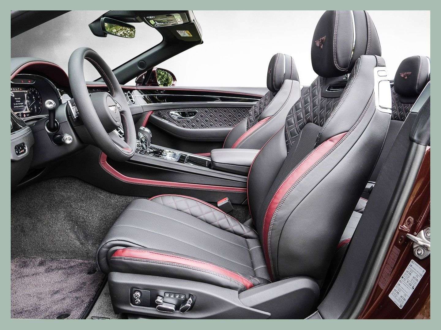 des Fahrzeuges: DüsseldorfBentley Continental GTC W12 SpeedFarbkombination:Außenfarbe: Cricketball (bordeauxrot)Lederfarbe: Beluga, Cricketball (bordeauxrot)Furnier: Piano BlackSonderausstattung:Extended Range Lackierung in Cricket BallDachfarbe Black22" Leichtmetallfelge "Sweped-Spoke" schwarz, lackiertselbstnivellierendes Bentley Embleme auf den Felgenschwarz lackierte BremssättelTouring SpecificationBlackline SpecificationKomfortausstattung für die VordersitzeKontrastziernähtegestickte Bentley Embleme auf den KopfstützenTüreinlagen und Sitzflächen in Leder (ersetzt Alcantara)Ambientebeleuchtung inkl. beleuchtete Einstiegsleistehochflorige Fußmatten mit Ledereinfassung vorne3-Speichen Lederlenkrad, 1-farbig, beheiztFurnier in Piano BlackChromstreifen im ArmaturentafelfurnierGaragentoröffner, 3-fachrotierendes Display, 3-FachBentley Dynamic Ride„NAIM for Bentley“ Highend Audiosystem mit 2.200 WattLuft-lonisatorWelcome Lighting – BegrüßungslichtLED Bodenbeleuchtung mit Bentley-Emblem vor TürenBatterieladezustanderhaltungsgerät inkl. SockelWindschott...Änderungen, Zwischenverkauf und Irrtümer vorbehalten.