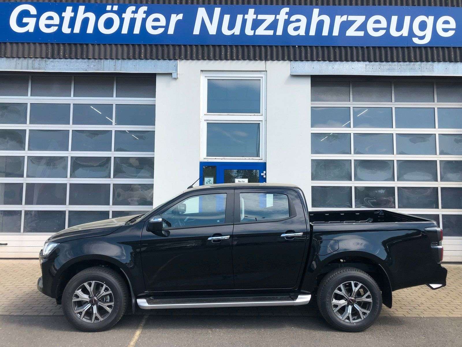 en bei Gethöffer Nutzfahrzeuge-- Nutzfahrzeugkompetenz seit 1984 --r sind offizieller ISUZU Haupthändler und die erste Adresse, wenn es um speziell auf Ihre Bedürfnisse konzipierte und entsprechend umgebaute D-Max geht!Zudem sind wir die Entwickler und Hersteller der radstandverlängerten Variante - BIG-MAX -Abgerundet wird unser Sortiment durch die robusten Hapert Qualitäts-Anhänger für Profis.Bei uns haben Sie die Wahl:r haben immer mindestens 20 ISUZU D-Max Pickup in verschiedenen Kabinen-, Ausstattungs- und Aufbauvarianten sowie 20 Hapert Anhänger der vier Baureihen (Pritsche, Kipper, Koffer und Transporter) auf unserem Betriebsgelände vorrätig.Gerne zeigen wir Ihnen die Fahrzeuge, beraten Sie über Unterschiede, technische Details und Aufrüstungsmöglichkeiten.Besuchen Sie uns in 25436 Uetersen, ca. 30 km nordwestlich von Hamburg.Die folgenden Informationen beziehen sich auf das in diesem Inserat angebotene Fahrzeug: D-Max Double Cab LSE AT in Onyx BlackModell 2023!!! SOFORT VERFÜGBAR !!!Zubehör: Dieses Fahrzeug wird in der Serienausstattung des Herstellers angeboten.Zubehör:AnhängerkupplungOptionales Zubehör (gegen Aufpreis):Anhängerkupplungen und WechselsystemeHardtops und andere LaderaumabdeckungenZusatzscheinwerfer, Bügel, nden, Standheizungen, …Alu-Felgen mit AT Bereifung in Standard- und XXL GrößenFahrwerke, Höherlegungen, Body-Lifts und ZusatzluftfederungenAuflastungen an Vorder- und Hinterachse bis zu 3.500 Kg GesamtgewichtAufbauten jeglicher Art: Pritschen, Dreiseitenkipper, Absetzkipper, Abrollkipper, …Auch Fahrgestelle für Wohnkabinen und Speziallaufbauten können realisiert werdenDas alles auch in Kombination mit einer Radstandverlängerung (BIG-MAX) bis zu 80 cmBitte kontaktieren Sie uns, um ein individuelles und bedarfsgerechtes Angebot zu erhalten.Die folgenden Informationen gelten für alle unsere Inserate des ISUZU D-Max ab Modelljahr 2020 und sind inhaltlich identisch:Der ISUZU D-Max ist ein heckangetriebener Pickup mit zuschaltbarem Allradantrieb und gehört in die Nutzfahrzeug-Kategorie N1 der Geländefahrzeuge.Der D-Max Typ BTF (ab Modelljahr 2020) wird für den europäischen Markt in folgenden Versionen angeboten: *1 Motor: Motor: 1,9 L Common-Rail VGS-Turbodiesel mit 120 KW und 360 Nm2 Getriebe: manuelles 6-Gang Getriebe oder 6-Gang Automatik (nicht im SiC)3 Kabinen: Single Cab (SiC), Space Cab (SC) und Double Cab (DC)4 Varianten: Ausstattung L (alle), LS (SC und DC), LSE (SC und DC) und V-CROSS (DC)7 Farben: weiß (uni, Serie) und 6 Metallic bzw. MicaIn den angefügten Bildern finden Sie eine Übersicht der 4 verfügbaren Ausstattungsvarianten L, LS, LSE und V-Cross, der Farben sowie einen Auszug der umfangreichen Assistenz- und Sicherheitssysteme.Basisdaten: Abgasnorm Euro 6d, Partikelfilter, SCR Katalysator, Harnstoff (AdBlue) und Abgasrückführung20+ Assistenz und Sicherheitssysteme (ADAS), 5 Sterne NCAP CrashtestFahrer-/Beifahrer-/Kopf- und Seitenairbag, Klimaanlage, Geschwindigkeitsbegrenzer, …Der D-Max ist ein geländegängiges Nutzfahrzeug, äußerst robust und hoch belastbar:30° Böschungswinkel vorn und 24° hinten27 cm Bodenfreiheit vorne und 24 cm hinten23° Rampenwinkel und 49° maximaler Kippwinkel(die vorstehenden Daten sind beim SiC mit Serienbereifung abweichend)80 cm Wattiefe (bei allen Fahrzeugvarianten)3.500 Kg zulässiges Gesamtgewicht1.450 Kg Vorderachslast und 1.910 Kg Hinterachslast (Auflastung möglich)1.000 Kg Nutzlast und mehr bei allen Modellen möglich3.500 Kg Anhängerlast (alle 4x4!)6.000 Kg zulässiges Zuggesamtgewicht (7.000 Kg beim Big-Max)Für weitere Informationen möchten wir Ihnen die beiden folgenden Links empfehlen:https://youtu.be/FmSfKgNBrPAhttps://www.isuzu-sales.de/d-maxGarantie:*12 Jahre: auf Durchrostung (von innen nach außen)5 Jahre: auf das Fahrzeug (bzw. 100.000 Km)2 Jahre: auf originale ISUZU Ersatzteile und Zubehör1 Jahr: auf alle weiteren Nachrüstungen und AufbautenDie vorstehenden Garantiezeiten gelten ab Erstinbetriebnahme!Bei Vorführ- oder Gebrauchtfahrzeugen verkürzen sich