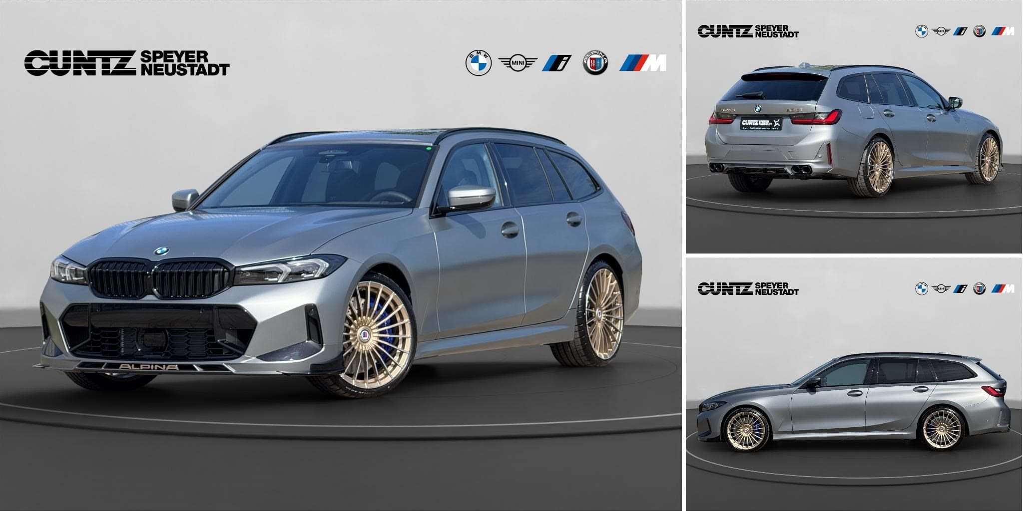 gLeder Vernasca Schwarz Dekorsteppung Editionen und PaketeAblagenpaket Connected Package Professional ConnectedDrive Services Gepäckraumpaket Antrieb, FahrwerkAdaptives Fahrwerk Aktives Sportdifferential Hochleistungs-Bremsanlage Sport-Automatik Getriebe (8-Gang) mit ALPINA SWITCH-TRONICVariable Sportlenkung Umwelt, cherheitActive Protection Adaptiver LED-Scheinwerfer Aktiver Fußgängerschutz Alarmanlage Beifahrerairbag Deaktivierung Fernlichtassistent Innenspiegel automatisch abblendend Reifendruckanzeige Komfort, InnenausstattungAkustikverglasung ALPINA Carbon Fibre mit Insignia in lberAmbientes Licht Fondkopfstützen, klappbar Galvanikapplikation für Bedienelemente Innen- und Außenspiegelpaket Interieurleisten 'Carbon Fibre' Klimaautomatik Komfortzugang Lenkradheizung Lordosenstütze für Fahrer und Beifahrertzheizung für Fahrer und Beifahrer tzverstellung, elektr. mit Memory für FahrersitzSonnenschutzrollos, hintere TürseitenscheibenSonnenschutzverglasung Sportsitze für Fahrer und Beifahrer FahrerassistenzBMW Drive Recorder Driving Assistant Professional Gesetzlicher Notruf Parking Assistant Plus TeleServices MultimediaBMW Live Cockpit Professional DAB Tuner Harman Kardon Surround Sound System ExterieurAnhängerkupplung mit schwenkbarem Kugelkopf und elektrischer EntriegelungLehnenbreitenverstellung FahrerseitePanorama Glasdach inkl. ALPINA Dachspoiler im vorderen Bereich des Daches (Entfall nicht möglich) RäderRadschraubensicherung Reifenpannenset IndividualumfängeBMW Individual Leuchten Shadow Line Dachhimmel Anthrazit, BMW Individual Dachreling Hochglanz Shadow LineHochglanz Shadow Line mit erweiterten UmfängenInstrumententafel lederbezogen Shadow Line Hochglanz, BMW Individual SonstigesAblage für Wireless ChargingActive Guard Plus ALPINA CLASSIC 20" Schmiederad lackiert in Oro Tecnico mit GlanzdrehungEndrohrblenden ALPINA, SchwarzFrozen Pure Grey metallicGT Schriftzug gestickt in den vorderen KopfstützenLeder Vernasca Schwarz mit Dekorsteppung Lenkrad Ausführung in ALPINA LAVALINA mit Nähten in Oro TecnicoModellbezeichnung + ALPINA Schriftzug am Heck des Fahrzeug, lackiert in Oro TecnicoPersonal eSIMSchriftzug ALPINA Oro Tecnico, im FrontspoilerSWITCH-TRONIC Schaltwippen aus Vollaluminium, CNC gefräst Gute Fahrt Paket Irrtümer und Zwischenverkauf vorbehalten.