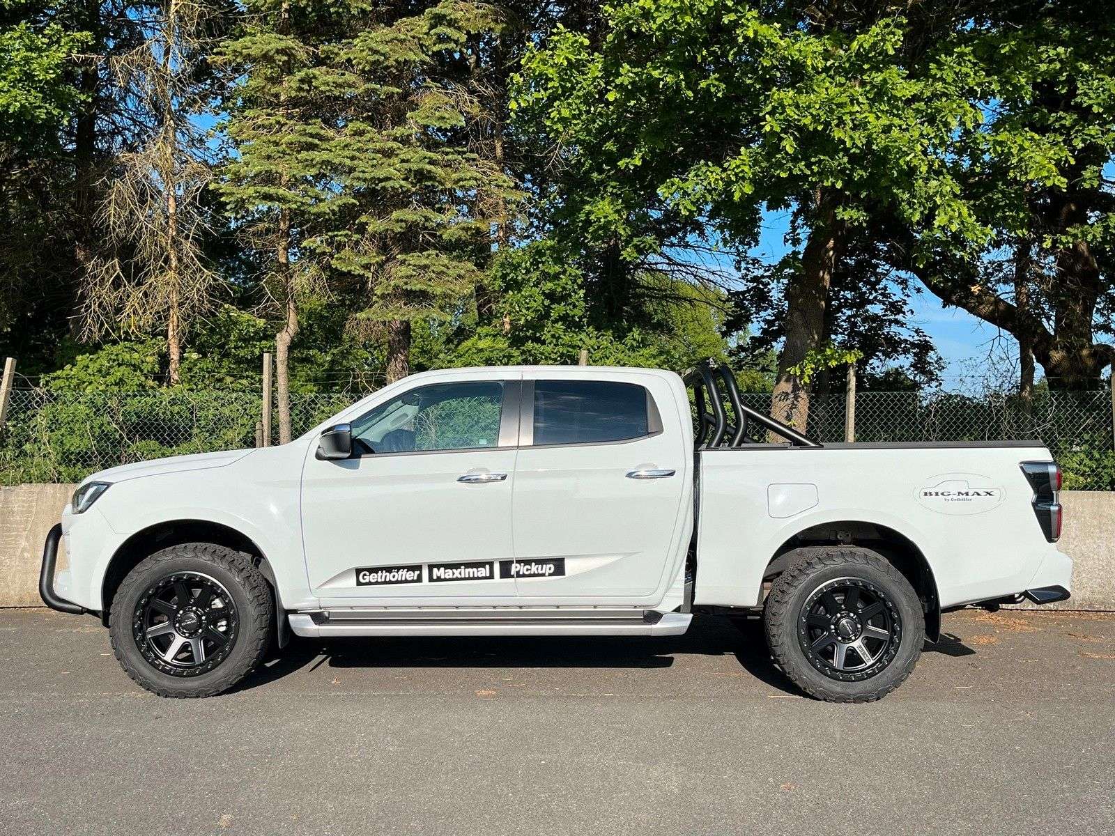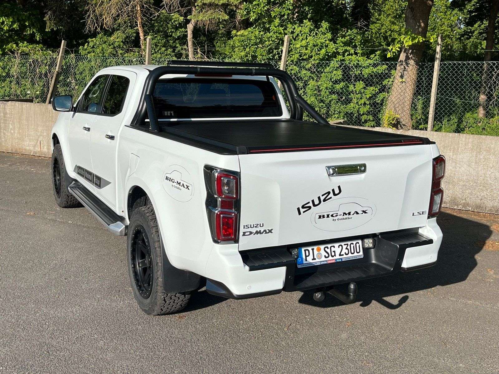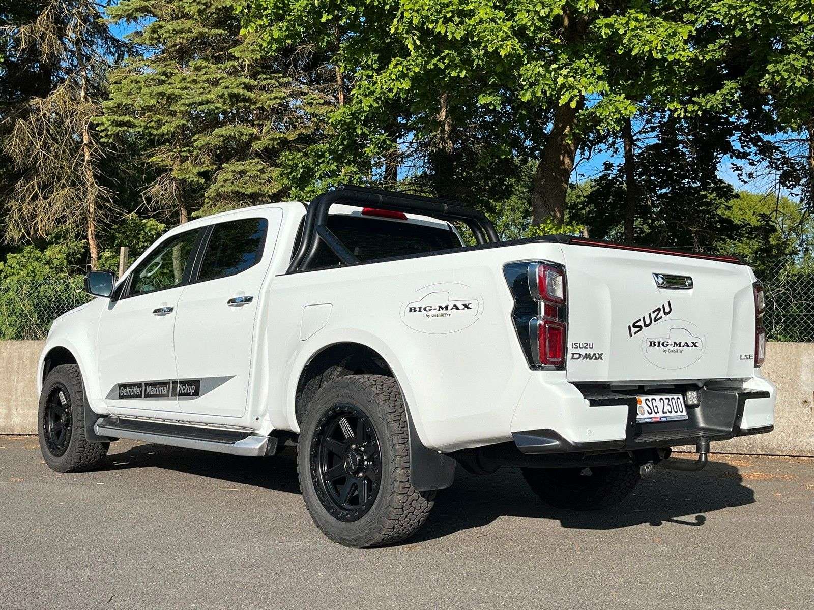 en bei Gethöffer Nutzfahrzeuge-- Nutzfahrzeugkompetenz seit 1984 --r sind offizieller ISUZU Haupthändler und die erste Adresse, wenn es um speziell auf Ihre Bedürfnisse konzipierte und entsprechend umgebaute D-Max geht!Zudem sind wir die Entwickler und Hersteller der radstandverlängerten Variante - BIG-MAX -Abgerundet wird unser Sortiment durch die robusten Hapert Qualitäts-Anhänger für Profis.Bei uns haben Sie die Wahl:r haben immer mindestens 20 ISUZU D-Max Pickup in verschiedenen Kabinen-, Ausstattungs- und Aufbauvarianten sowie 20 Hapert Anhänger der vier Baureihen (Pritsche, Kipper, Koffer und Transporter) auf unserem Betriebsgelände vorrätig.Gerne zeigen wir Ihnen die Fahrzeuge, beraten Sie über Unterschiede, technische Details und Aufrüstungsmöglichkeiten.Besuchen Sie uns in 25436 Uetersen, ca. 30 km nordwestlich von Hamburg.Die folgenden Informationen beziehen sich auf das in diesem Inserat angebotene Fahrzeug: D-Max BIG-MAX L1 Double Cab LSE AT in WeißZubehör: Dieses Fahrzeug wird in der Serienausstattung des Herstellers angeboten.Zubehör:BIG-MAX L1 Double Cab, Radstand um ca. 325 mm verlängert = 3.450 mmErhöhungdes zulässigen Zug-Gesamtgewichts auf 7.000Kg in Verbindung mit Big-Max RadstandverlängerungAuflastung auf 3.500Kg zulässiges GesamtgewichtZusatzluftfederung an der HinterachseVorderache aufgelastet20 Zoll Alufelgen275/55R20 AT GanzjahresreifenAnhängerkupplungÜberrollbügel in schwarzFrontbügel in schwarzLazer Linear 36 LED Fernscheinwerfer mit 13.500 Lumen und ECE ZulassungLaderaumrollo in schwarz mit elektrischer Betätigungausziehbarer Laderaumboden, Schwerlastversion bis 600KgLED RückfahrschweinwerferScheibentönung hintenLED LaderaumbeleuchtungOptionales Zubehör (gegen Aufpreis):· Hardtops und andere Laderaumabdeckungen· Zusatzscheinwerfer, Bügel, nden, Standheizungen, …· Alu-Felgen mit AT Bereifung in Standard- und XXL Größen· Fahrwerke, Höherlegungen, Body-Lifts und Zusatzluftfederungen· Auflastungen an Vorder- und Hinterachse bis zu 3.500 Kg Gesamtgewicht· Aufbauten jeglicher Art: Pritschen, Dreiseitenkipper, Absetzkipper, Abrollkipper, …· Auch Fahrgestelle für Wohnkabinen und Speziallaufbauten können realisiert werden · Das alles auch in Kombination mit einer Radstandverlängerung (BIG-MAX) bis zu 80 cmBitte kontaktieren Sie uns, um ein individuelles und bedarfsgerechtes Angebot zu erhalten.Die folgenden Informationen gelten für alle unsere Inserate des ISUZU D-Max ab Modelljahr 2020 und sind inhaltlich identisch:Der D-Max Typ BTF (ab Modelljahr 2020) wird für den europäischen Markt in folgenden Versionen angeboten: · 1 Motor: Motor: 1,9 L Common-Rail VGS-Turbodiesel mit 120 KW und 360 Nm· 2 Getriebe: manuelles 6-Gang Getriebe oder 6-Gang Automatik (nicht im SiC)· 3 Kabinen: Single Cab (SiC), Space Cab (SC) und Double Cab (DC)· 4 Varianten: Ausstattung L (alle), LS (SC und DC), LSE (SC und DC) und V-CROSS (DC)· 7 Farben: weiß (uni, Serie) und 6 MetallicBasisdaten: Abgasnorm Euro 6d, Partikelfilter, SCR Katalysator, Harnstoff (AdBlue) und Abgasrückführung20+ Assistenz und Sicherheitssysteme (ADAS), 5 Sterne NCAP CrashtestFahrer-/Beifahrer-/Kopf- und Seitenairbag, Klimaanlage, Geschwindigkeitsbegrenzer, …Der D-Max ist ein geländegängiges Nutzfahrzeug, äußerst robust und hoch belastbar:· 27 cm Bodenfreiheit vorne und 24 cm hinten(die vorstehenden Daten sind beim SiC mit Serienbereifung abweichend)· 80 cm Wattiefe (bei allen Fahrzeugvarianten)· 1.450 Kg Vorderachslast und 1.910 Kg Hinterachslast (Auflastung möglich)· 1.000 Kg Nutzlast und mehr bei allen Modellen möglich· 3.500 Kg Anhängerlast (alle 4x4!)· 6.000 Kg zulässiges Zuggesamtgewicht (7.000 Kg beim Big-Max)Garantie: · 12 Jahre: auf Durchrostung (von innen nach außen)· 5 Jahre: auf das Fahrzeug (bzw. 100.000 Km)· 2 Jahre: auf originale ISUZU Ersatzteile und Zubehör· 1 Jahr: auf alle weiteren Nachrüstungen und AufbautenDie vorstehenden Garantiezeiten gelten ab Erstinbetriebnahme!Bei Vorführ- oder Gebrauchtfahrzeugen verkürzen sich die Fristen entsprec