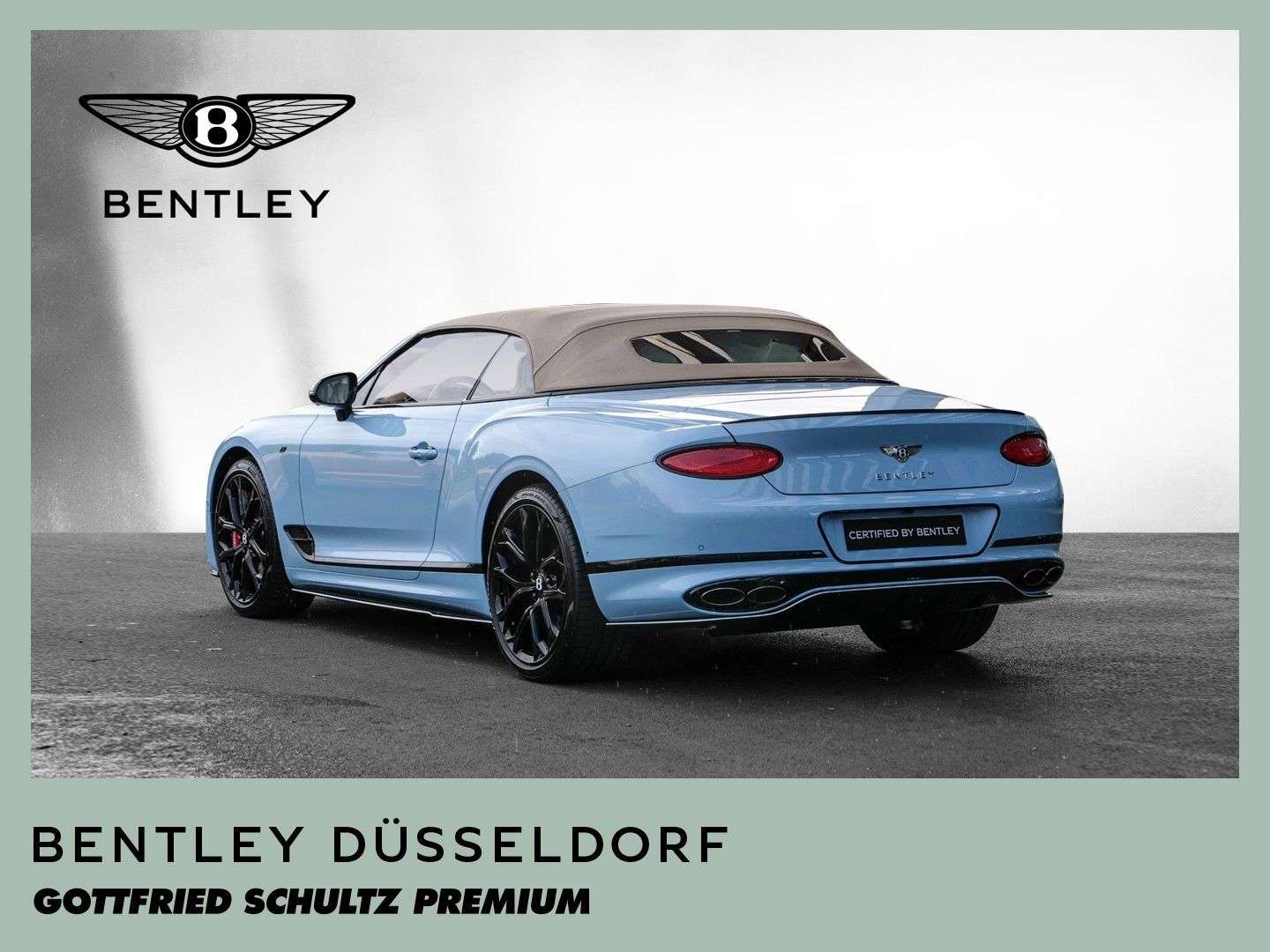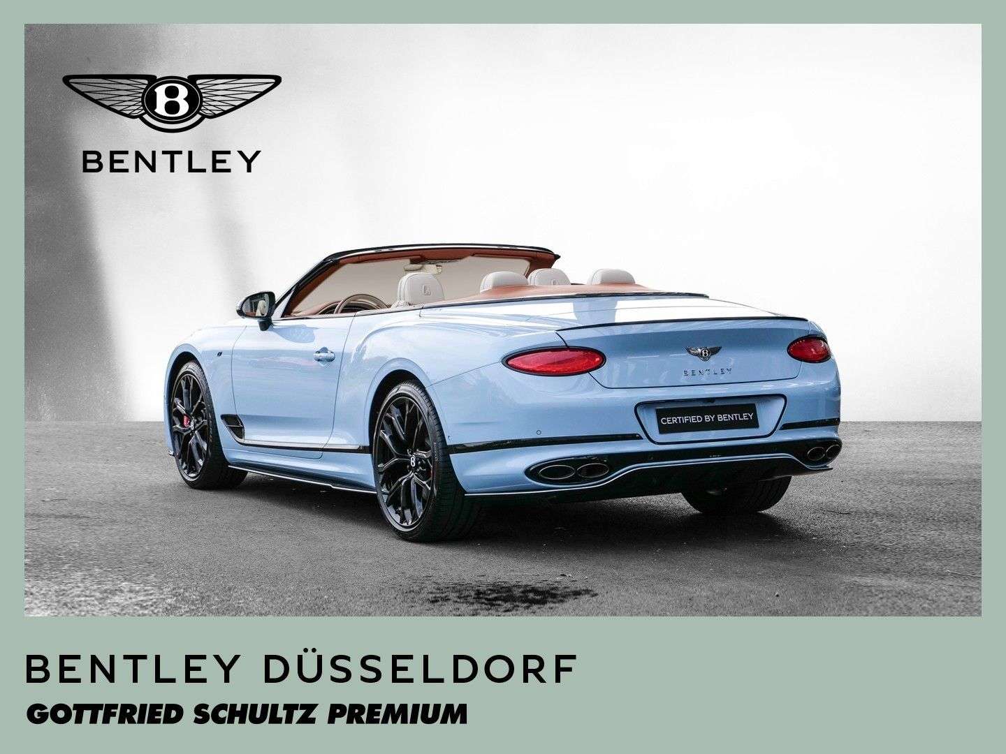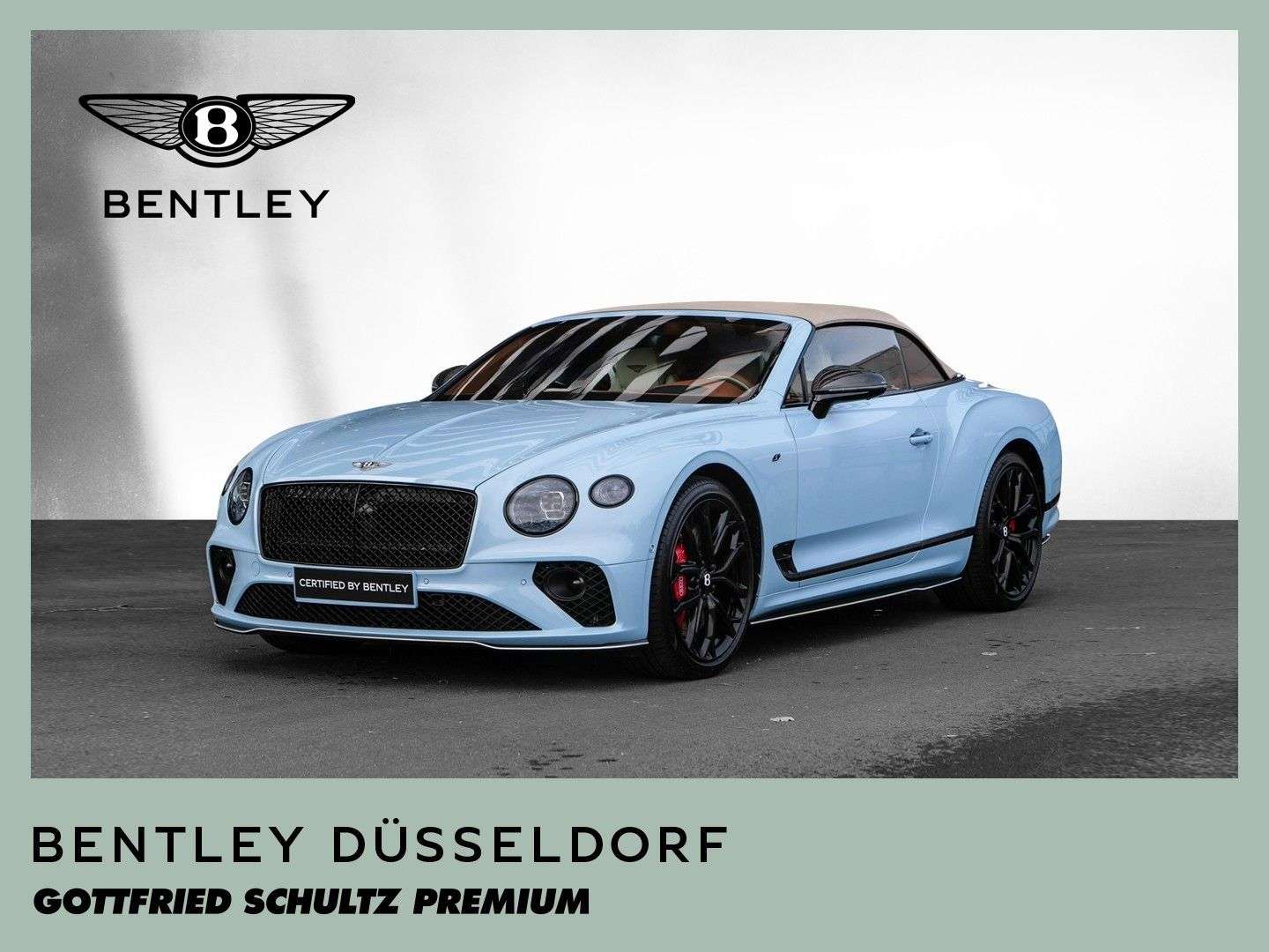des Fahrzeuges: DüsseldorfBentley Continental GTC S V8 Fahrzeug aus VorbesitzFarbkombination:Außenfarbe: Jetstream II (babyblau)Hauptleder: Linen (beige)Zweitleder: Newmarket Tan (braun)Furnier: Carbon FibreSonderausstattung:Extended Range Lackierung in Jetstream II22“ Leichtmetallsportfelge im 10-Speichen-Design, schwarz lackiertSelbstnivellierende Bentley Embleme auf den FelgenAußendachfarbe in TweedCarbonaußenteile mit Jetstream II Akzenten versehenTouring Specificationyling SpecificationColour SpecificationKomfortausstattung für die VordersitzeSitzflächen und Türeinlagen in Leder mit DiamantsteppungFurnier in High Gloss CarbonSitzgurte in KontrastfarbeKreuzstichnähte – by Mullinerzusätzliche “Diamant-Riffelung” der LüftungseinlässeAmbientebeleuchtung inkl. beleuchtete Einstiegsleistehochflorige Fußmatten mit Ledereinfassung vorneFußmatteneinfassung in Kontrastleder3-Speichen Lederlenkrad, 2-farbig, beheizbar, mit geprägtem LederSportpedalerieLED Bodenbeleuchtung mit Bentley-Emblem vor Türen„NAIM for Bentley“ Highend AudiosystemMulliner Tankverschluss und ÖleinfülldeckelRotierendes Display, 3-FachGaragentoröffner, 3-fachBatterieladezustanderhaltungsgeräteinschlagschutzfolie (Front)Carbon Spiegelkappen...Änderungen, Zwischenverkauf und Irrtümer vorbehalten.