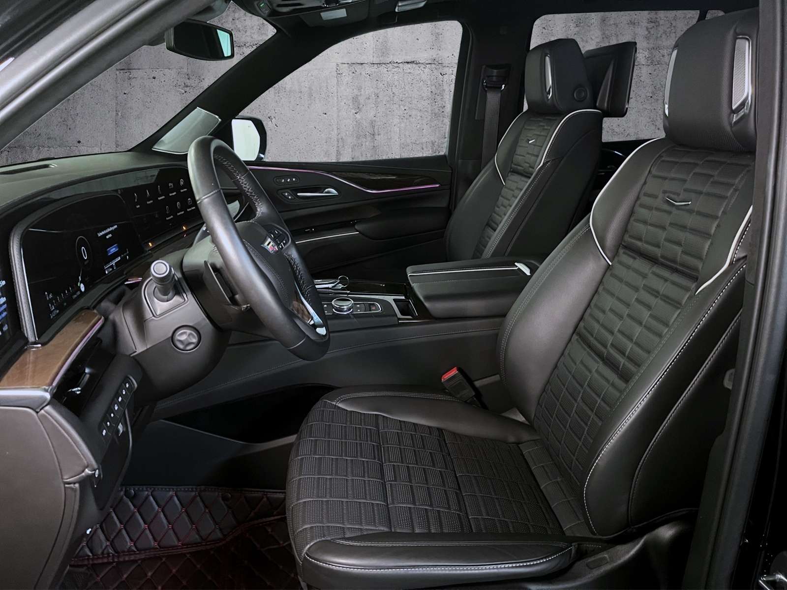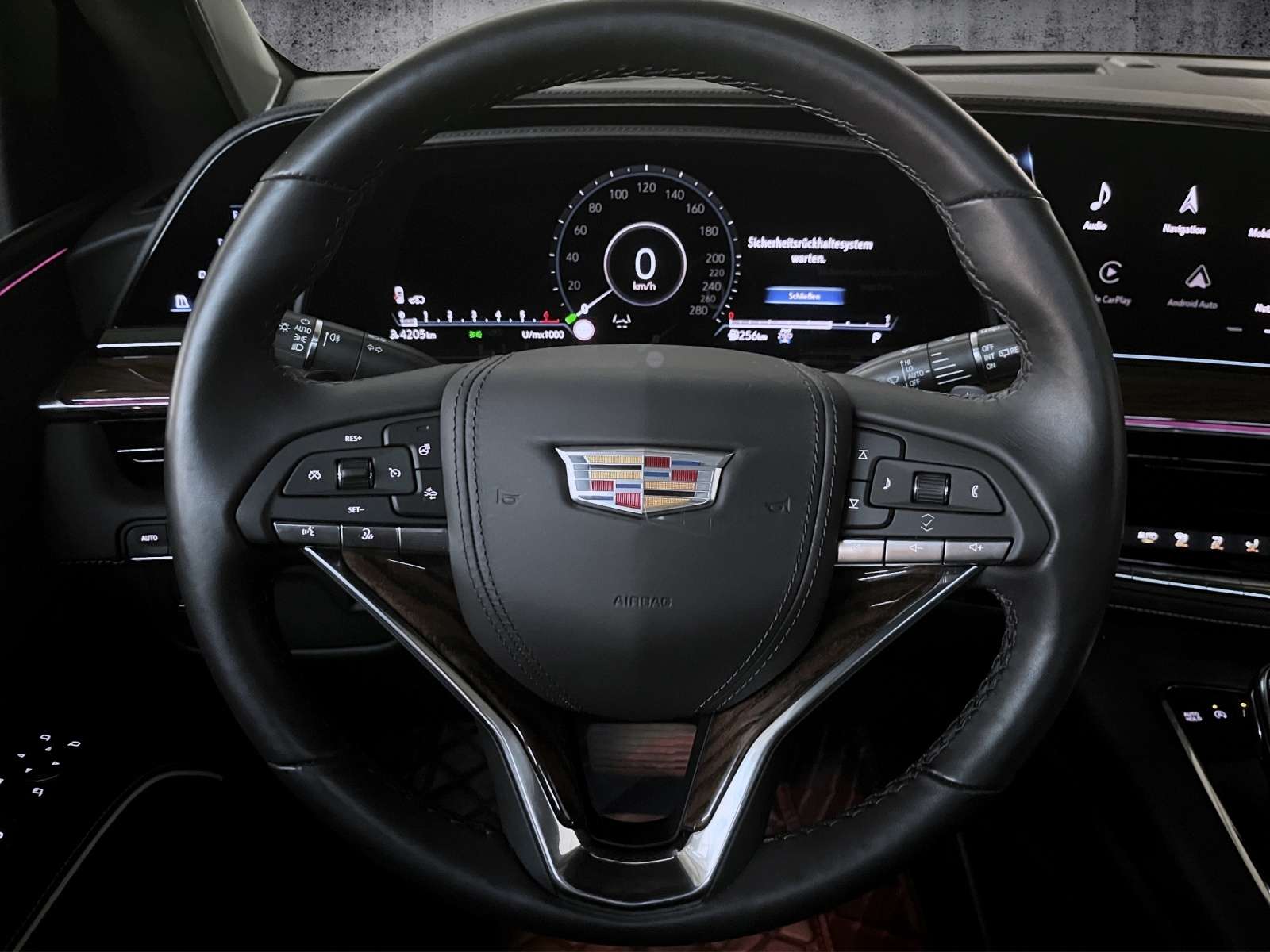 ts: 1. HandScheckheftgepflegtTechnik + Sicherheit: Niveauregulierung automatischStabilitätskontrolle (StabiliTrak)TraktionskontrolleSeitenairbag vornKopf-Airbag-System (Windowbag)Airbag Fahrer-/BeifahrerseiteDifferentialsperreDiebstahl-Warnanlage mit Innenraumüberwachung / NeigungsüberwachungInnenspiegel mit Abblendautomatikelektrische ParkbremseStart/Stop AutomatikGurtstrafferServolenkungMotor 6,2 Ltr. - 313 kW V8 KATMultimedia: NavigationssystemFreisprechanlage BluetoothDVD-System im FondMultimediabuchse: USBSprachsteuerungMultimediabuchseRadioMonitore in KopfstützenTouch ScreenAndroid AutoCarPlayInfotainment-System: Cadillac User Experience (CUE) mit TouchscreenAssistenzsysteme: Fahrassistenz-Sytem: SpurwechselassistentFahrassistenz-System: FernlichtassistentKamerasystem 360 GradFahrassistenz-System: Spurhalteassistent (Lane Departure Warning)Totwinkelassistent (side assist)Fahrassistenz-System: Park-Assistent (Park Assist)Einparkhilfe Plus vorn und hintenScheibenwischer mit RegensensorGeschwindigkeitsregelanlage (GRA) TempomatHead-up-DisplayInnen: LederausstattungLenkrad mit MultifunktionBordcomputerelektrische Fensterheber vorne + hintenVirtuelles CockpitLederlenkradLenkrad verstellbarFußmattenLenkrad heizbarKlimaautomatik 3 ZonenSteckdose 230VSonnenblenden mit Spiegel (beleuchtet)Sitze + Polster: Sitzheizung hintenKomfortsitze vorn (inkl. Belüftung / Sitzheizung)MittelarmlehneMittelarmlehne vorneelektr. Sitz(e)belüftete Sitz(e)Lendenwirbelstütze3.Sitzreihe elektr. versenkbarIso-FixAussen: SchiebedachSchlüssellose TürentriegelungMetallic-LackierungAnhängekupplungGlasdachSchiebedach elektr.Außenspiegel elektr. verstell-, heiz- und anklappbar, mit AbblendautomatikVerglasung getöntDämmglasHeckklappe mit automatischem Öffnungs- und SchließsystemGlasdach: PanoramadachTürgriffe außen mit LED-BeleuchtungScheinwerfer + Leuchten: adaptives KurvenlichtScheinwerfer LEDAbbiege-/KurvenlichtAmbiente-BeleuchtungNebelschlussleuchteRäder + Reifen: Reifendruck-KontrollsystemLM-FelgenReserverad als NotradPakete: Raucher-PaketMemory-PaketSonstiges: KühlboxLenkrad (Holz/Leder)TrittbretterRadstand 2946 mmParkbremse elektronisch (EPB)Fahrassistenz-System: Auffahrwarnsystem (Forward Collision Warning)Änderungen, Zwischenverkauf und Irrtümer vorbehalten!Produktsicherheitshinweise unter:Cadillac Europe GmbH, Albisriederstrasse 253, 8047 Zürich, Schweiz, E-Mail: support@cadillaceurope.com