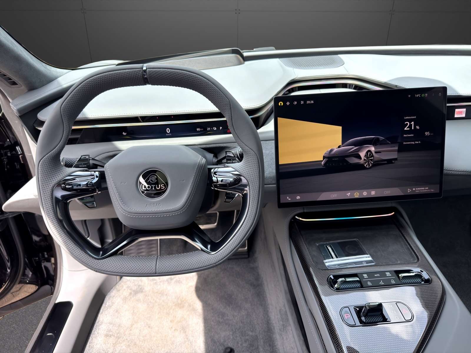 +Sicherheit:ESPABSASRFahrerairbagSeiten-AirbagsBeifahrer-AirbagDiebstahlwarnanlageAußentemperatur-AnzeigeFahrw ParkbremseElektr. Bremssystem (EBS)Fahrwerksregelung: Adaptives DämpfungssystemPre-CrashServolenkungelektr. WegfahrsperreNotbrems-Warnblinkautomatik (ESS)Multimedia: NavigationssystemAutotelefonFreisprecheinrichtungSoundsystemSprachsteuerungdigitaler RadioempfangBluetoothRadioWLANTouch ScreenFond EntertainmentAndroid AutoInduktionsladen für SmartphonesCarPlayMusikstreaming integriertAssistenzsysteme: BerganfahrassistentRückfahrkameraSpurwechselassistentSpurhalteassistent (lane assist)Verkehrszeichen-Erkennungmpomat (GRA): autom. DistanzregelungTotwinkelassistent (side assist)ParklenkassistentEinparkhilfeEinparkhilfe hintenEinparkhilfe vornRegensensorLichtsensorGeschwindigkeitsregelanlage (GRA) mpomatAbstandswarnerHead-up-Display (HUD)360° KameraInnen: Klimaautomatik: MehrzonenklimaautomatikKlimaautomatikStandheizungMultifunktionslenkradBordcomputerelektrische FensterheberFensterheber elektr. 4*Virtuelles CockpitGepäckraumabdeckungFußmattenSportlenkradKlimaautomatik 4 ZonenDachhimmel AlcantaraLenkrad beheizbarStandklimaanlageDachhimmelSitze + Polster: SitzheizungSitzheizung vorne + hintenMittelarmlehneMittelarmlehne vorneMemorysitz(e)elektr. Sitz(e)LendenwirbelstützeEinstieghilfe ("Easy Entry")Fahrersitz höhenverstellbarRücksitzbank umlegbarelektr. Sitzeinstellung, hintenIso-FixAussen: ZV mit Funkfernbedienungelektr. AussenspiegelZentralverriegelungAnhängekupplungZentralverriegelung: Keyless Entrygetönte ScheibenAußenspiegel beheizbarAnhängerkupplung schwenkbarAußenspiegel elektr.: MemoryspiegelScheinwerfer +Leuchten:LED-RückleuchtenLED-ScheinwerferScheinwerferregulierungAbbiege-/KurvenlichtTagfahrlichtLED-Tagfahrli HomeComing HomeBlendfreies FernlichtRäder + Reifen: Reifendruck-KontrolleLeichtmetallfelgenSommerreifenPannensetSonstiges: - Lotus Emeya Base - Stellar Black- 21 Zoll 10 Speichen Felgen schwarz glänzend- rote Bremssättel 6 Kolben- Ledersitze mit grauen Ziernähten und grauen Gurten- Touring Paket- Glasdach- Getönte Scheiben hinten- elektrische AnhängerkupplungGerne unterbreiten wir Ihnen Leasing- oder Finanzierungsangebote nach Ihren Wünschen.Wir freuen uns auf Ihren Anruf.Ihr Lotus Leipzig am.Änderungen, Zwischenverkauf und Irrtümer vorbehalten!