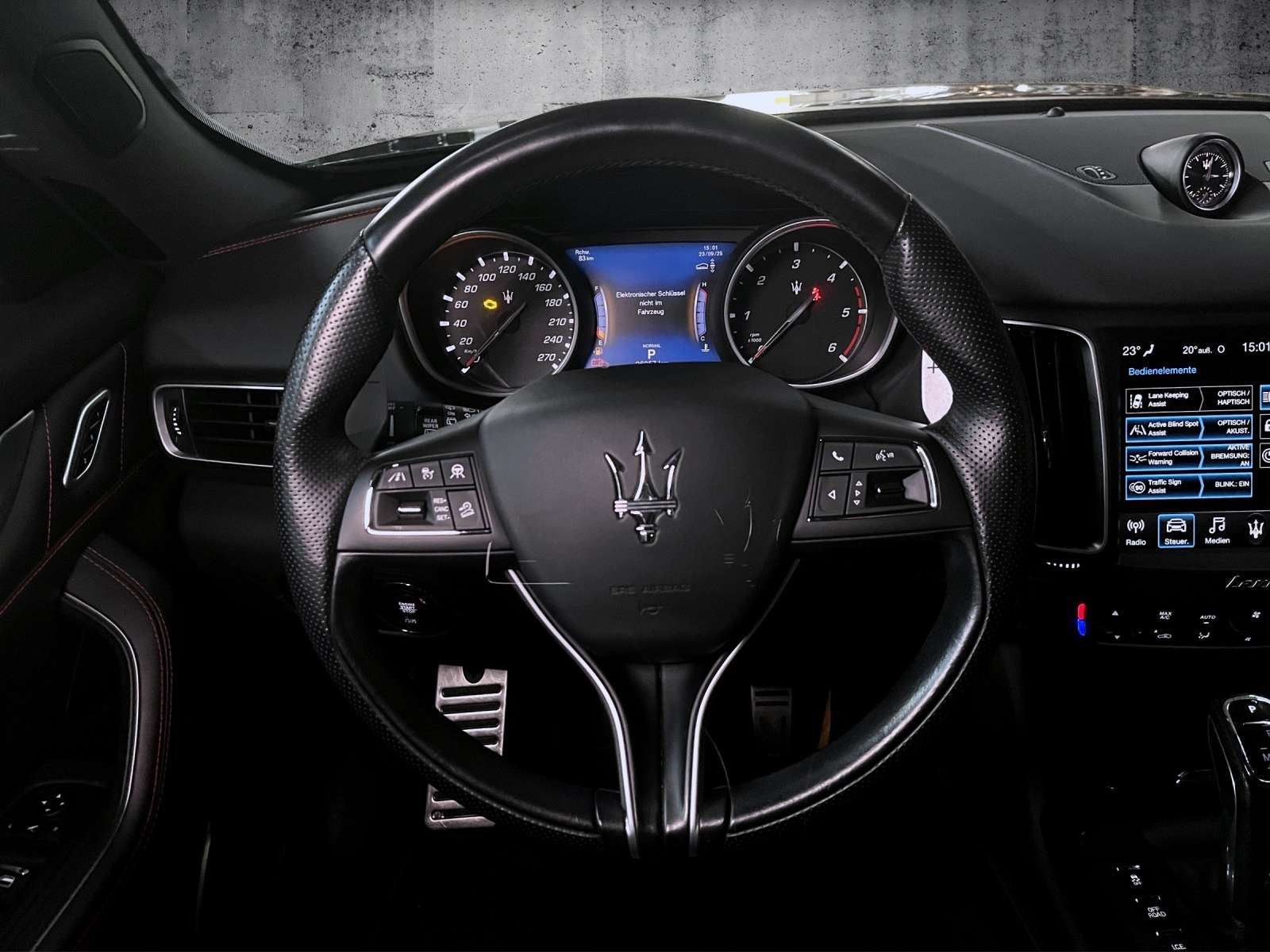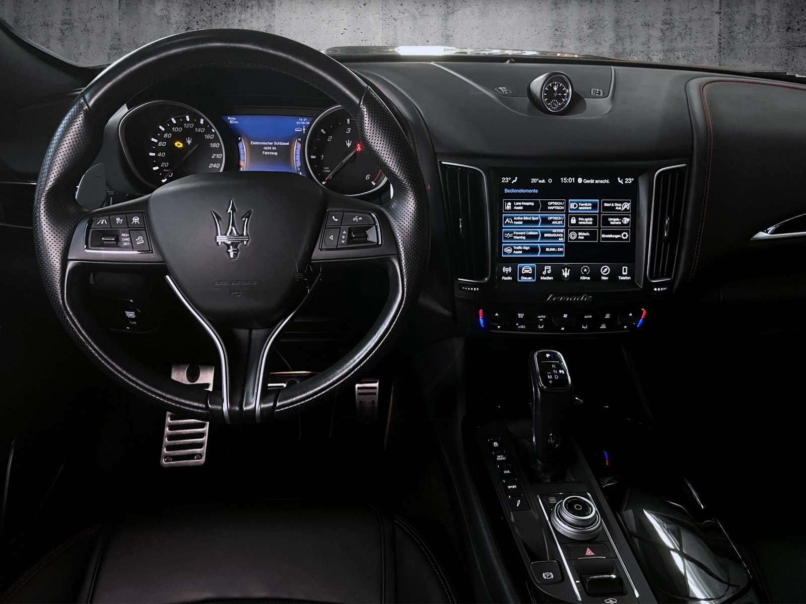ts: ScheckheftgepflegtTechnik + Sicherheit: LuftfederungESPASRAutomatische FeststellbremseKopfairbagsDiebstahlwarnanlageDifferentialsperreMotorschleppmomentregelung (MSR)Innenspiegel automatisch abblendendAußentemperatur-AnzeigePartikelfilter (DPF)Dynamiklenkungelektrische ParkbremseStart/Stop AutomatikMultimedia: NavigationssystemFreisprecheinrichtungMp3Multimediabuchse: SD KartenslotMultimediabuchse: USBSoundsystem: Harman KardonSprachsteuerungdigitaler RadioempfangBluetoothMultimediabuchse: AUX-INTouch ScreenAssistenzsysteme: BerganfahrassistentRückfahrkameraBergabfahrassistentSpurhalteassistent (lane assist)Verkehrszeichen-ErkennungLichtsensor: FernlichtassistentTempomat (GRA): autom. DistanzregelungTotwinkelassistent (side assist)Einparkhilfe hintenEinparkhilfe vornRegensensorLichtsensor: autom. Fahrlichtschaltung (ALS)Notbremsassistent (City-Notbremsfunktion)AbstandswarnerSeitenkamera360° KameraInnen: Staub- und PollenfilterSchaltwippenBordcomputerFensterheber elektr. 2*Fensterheber elektr. 4*Lenkrad verstellbarKlimaautomatik 2-ZonenFußmattenDurchladeeinrichtung: Ski-/DurchladesackSitze + Polster: Sitzheizung vorneMittelarmlehne hintenMittelarmlehne vorneMemorysitz(e)LendenwirbelstützeEinstieghilfe ("Easy Entry")SportsitzeFahrersitz höhenverstellbarRücksitzbank umlegbarRückbank geteiltAussen: ZV mit FunkfernbedienungStoßfänger WagenfarbeSchiebedach elektr.Zentralverriegelung: Keyless Entrygetönte ScheibenAußenspiegel beheizbarSpoilerGepäckraumklappe elektr.Glasdach: PanoramadachScheinwerfer + Leuchten: LED-RückleuchtenLED-Scheinwerfer: LED-Matrix ScheinwerferNebelscheinwerferLED-TagfahrlichtComing HomeRäder + Reifen: Reifendruck-KontrolleLeichtmetallfelgen: 21"SommerreifenPakete: Herstellerpaket: BusinessHerstellerpaket: SportSonstiges: Dekor: Holzeinlagen*Levante D GranSport MY2020**Interieur:* Naturledervollausstattung mit perforiertem Leder, gesticktes Dreizack-Logo auf den Kopfstützen *Exterieur:* Metallic-Lackierung LED-Matrix-Scheinwerfer, rote Aluminium-Bremssättel, Privacy Verglasung *Räder:* Leichtmetallräder 21 Zoll im Anteo Black-Design, Mischbereifung*Multimedia:* 8,4 Zoll Farbdisplay inkl. Navigationsystem, Apple Car Play und Andoid Auto, Digital Radio, Harman Kadon Premium-Soundsystem*Business Paket Plus: Navigationssystem, Einparkhilfe vorn+hinten, Sitzheizung vorn*Fahrassistenz-Paket Plus:* Adaptive Geschwindigkeitsregelanlage mit Stop&Go, Auffahrwarnsystem, Spurhalteassistent, Totwinkelassistent, Verkehrszeichen Erkennung, ghway-Assist, Surround Viewe Kamera *Nerissimo Paket:* Auspuffanlage mit schwarzen Endrohren, Schwarze Fenstereinfassungen, Kofferraumleiste in Black Chrome, Türgriffe in Wagenfarbe, Obere Kühlergrilleinfassung in schwarz, Modell-/Versionsbezeichnung in Black Chrome, Schwarze Nebelscheinwerfereinfassungen, Außenspiegelabdeckung in schwarz,Rückleuchten in dunkler Ausführung*Sonstiges:* Sitzheizung vorn+hinten, elektr. Panorama-Glasschiebedach Änderungen, Zwischenverkauf und Irrtümer vorbehalten!