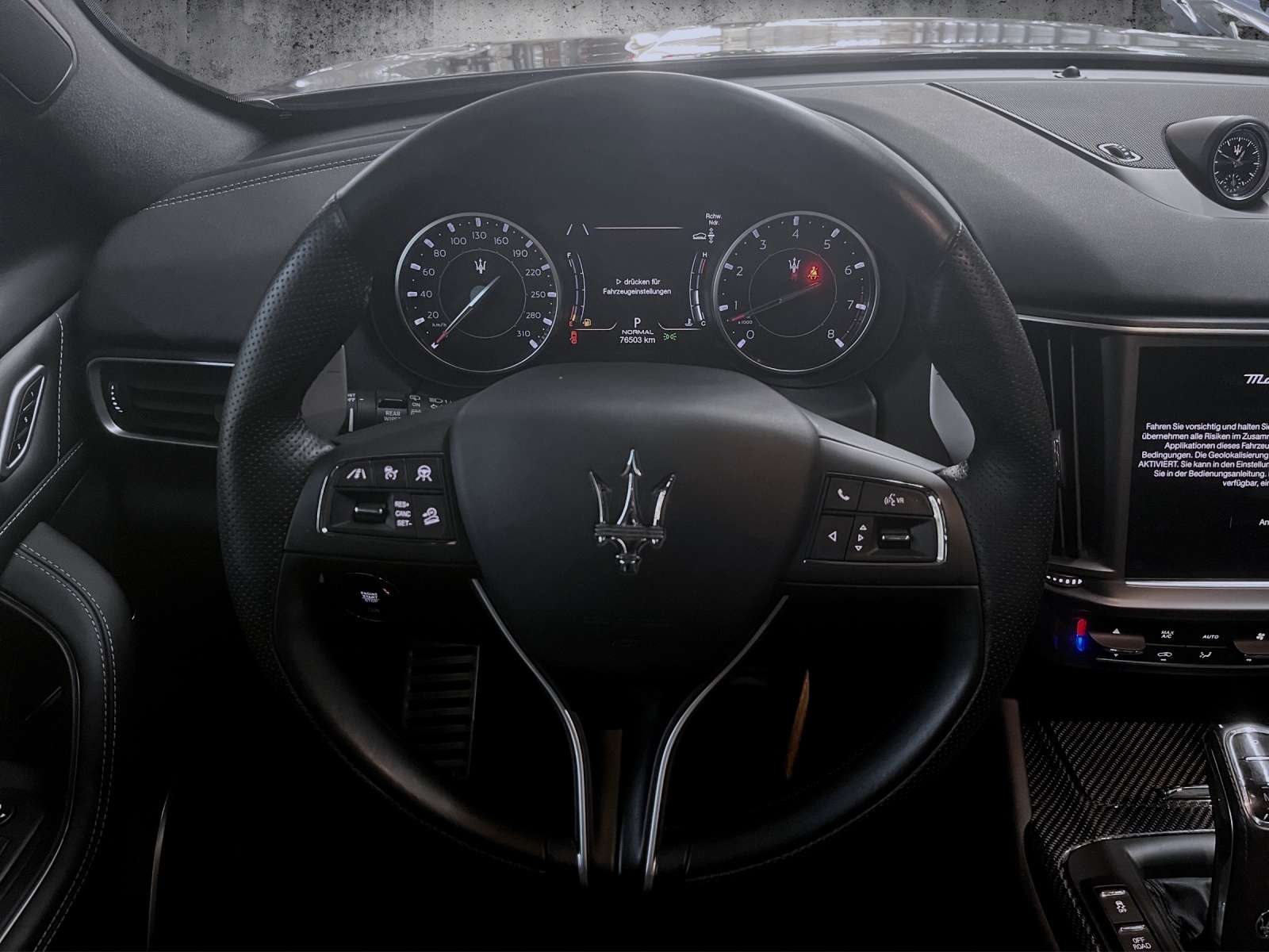 ts: 1. HandScheckheftgepflegtTechnik + Sicherheit: Luftfederung elektronisch geregeltElektronisches Stabilitäts-Programm (MSP)ABSElektron. TraktionskontrolleAutomatische FeststellbremseAirbag Beifahrerseite abschaltbarKopf-Airbag-System (Windowbag)Airbag Fahrer-/Beifahrerseite und Seitenairbag vornDiebstahl-WarnanlageDifferentialsperre (nterachse)Motor-Schleppmoment-Regulator (MSR)Innenspiegel mit AbblendautomatikAußentemperaturanzeigeFahrwerk elektronisch geregelt (Skyhook)Start/Stop-Anlageelektrische ParkbremseElektr. Bremskraftverteilung (EBD)Start-Stop-KnopfMultimedia: NavigationssystemSoundsystemFreisprecheinrichtung BluetoothUSB-AnschlussUSB und Aux-In-AnschlussMultimedia-System Maserati Touch Control (inkl. 8,4 Zoll Touchscreen-Farbdisplay, DVD-Player, SD-Karten-Schnittstelle)Telematik-System Maserati CallDAB-Tuner (Radioempfang digital)Touch ScreenSprachbedienung Smart Personal Assistent(SIRI)Assistenzsysteme:RückfahrkameraBergabfahrassistentBerganfahrhilfeGeschwindigkeitsbegrenzungsanlageSpurw (lane assist)Verkehrszeichen-ErkennungTempomat (GRA): autom. DistanzregelungTotwinkelassistent (side assist)Einparkhilfe Plus vorn und hintenTrailer AssistLicht- / RegensensorGeschwindigkeitsregelanlage (GRA) TempomatNotbrems-Assistent (BAS)FrontkameraSeitenkameraInnen: Klimaanlage manuellKlimaanlage motorbetriebenLederausstattungStaub- und PollenfilterLenkrad mit Schaltwippen/-tastenLenkrad (Sport/Leder - 3-Speichen) mit Multifunktion, Lederfarbe schwarzelektrische Fensterheber vorne + hintenBordcomputer mit FarbdisplayFensterheber elektr. 4*Gepäckraumabdeckung / RolloKlimaautomatik 2-ZonenFußmatten VeloursSportlenkradLenkrad beheizbarLenksäule (Lenkrad) elektr. verstellbar (vertikal / axial)Dachhimmel StoffSitze + Polster: SitzheizungSitzheizung vorneMittelarmlehne hinten mit GetränkehalterMittelarmlehne vorn mit klimatisiertem Staufach und 12V-AnschlußSportsitze vorn elektr. verstellbar (links mit Memory)belüftete Sitz(e)Aussen: Zentralverriegelung mit FernbedienungStoßfänger / Radkästen / Seitenschürzen WagenfarbeAnhängekupplungAußenspiegel elektr. verstell-, heiz- und anklappbarZentralverriegelung mit Funkfernbedienung Keyless EntryKeyless-Entry & GOAnhängekupplung abnehmbarDoppelverglasungKofferraumdeckel / Heckklappe elektrisch betätigt (öffnen + schliessen)Scheinwerfer + Leuchten: Heckleuchten LEDHeckleuchten LED, abgedunkeltMatrix-LED-ScheinwerferAbbiege-/KurvenlichtTagfahrlicht LEDNebelscheinwerfer LEDRäder + Reifen: Reifendruck-KontrollsystemLM-FelgenLeichtmetallfelgen: 21"Sonstiges: Bremsanlage: BremboSoft-Close-Automatik für TürenPedalerie elektr. einstellbarBremsassistent (HBA)Parkbremse elektrisch (EPB)Steckdose (12V-Anschluß) im FondBremssättel Schwarz lackiertBergabfahr-AssistentRadstand 3004 mmÄnderungen, Zwischenverkauf und Irrtümer vorbehalten!