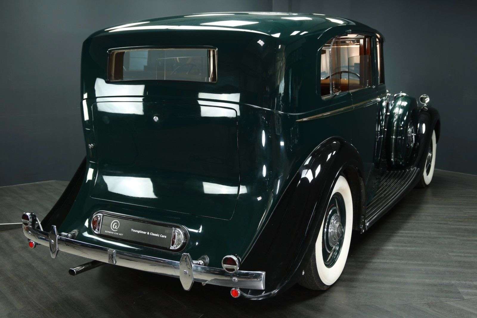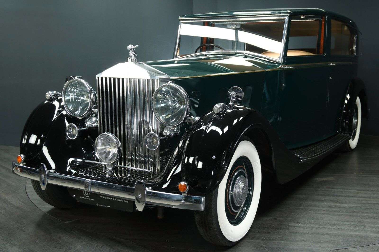 bung In den Jahren 1936 bis 1939 sind 727 Exemplare des großartigen Rolls-Royce Phantom III gebaut worden. Wir dürfen hier aus langjährigem sitz diesen 1938er Phantom III im Auftrag der Eigentümerin anbieten.Dieses Fahrgestell mit der Nummer 3DL88 wurde im Rolls-Royce Werk in Derby am 11. August 1938 zu ersten Testfahrten genutzt. Noch ohne Aufbau.Am 15.8.1938 ist dann das Chassis zu H.J Mulliner Ltd. zur Anfertigung der Karosserie geliefert worden. Die Design-Nummer lautet 6194, die Aufbaunummer 4595. Schon damals war die Farbgebung dunkelgrün mit schwarz und Leder hellbraun.Der steller des Fahrgestells war der Händler John Croal & Sons aus Edingburgh, Schottland, denen die Karosserie Firma H.J. Mulliner zu dem Zeitpunkt sogar gehörte. Vom 13. bis 22. Oktober 1938 stand unser Phantom III auf der Earls Court Show in London (Stand 94).Dort konnte der Wagen die Bronzemedaille gewinnen für den phantastischen Aufbau ! Im Messekatalog und der britischen Zeitschrift "The Autocar" ist dieser Rolls-Royce damals ausführlich besprochen worden.Die Qualität der Arbeit von H.J. Mulliner war so hoch, dass Rolls-Royce diesen trieb 1959 übernommen hat.Nach der Messe hat der große Rolls-Royce Händler Jack Barclay aus London den Wagen übernommen und ihn am 17.12.1938 an Sidney E. Parkes für zu der Zeit atemberaubende Summe von GBP 3.008,- verkauft. Dieser Herr Parkes nutzte den Phantom bis 1952.Wir verfügen über ein Foto der original Zeichnung vom Karosseriehersteller und ein Foto des Neuwagens von Jack Barclay LTD, sowie Kopien der Neuwagenrechnung.Im Jahre 1987 wurde unser Wagen aufwändig restauriert und präsentiert sich auch heute noch in wunderschönem Zustand !Die letzten Jahre ist der Wagen für zahlreiche Touren genutzt worden und hat sich als äußerst zuverlässig erwiesen. Der letzte such in einer bekannten Fachwerkstatt fand im Juni 2025 statt. Dabei sind unter anderem sowohl die Reifen, als auch der TÜV erneuert worden.Die zahllosen Ausstattungsdetails sind geradezu atemberaubend ... es gibt bei diesem Luxus Automobil derart viele Extras zu entdecken, das es eine wahre Freude ist:Eine Bar mit zwei Flaschen, acht kleine cher (mit der eingravierten Fahrgestellnummer !), Weißwandreifen (im Juni 2025 erneuert), eine elektrische Trennscheibe, Sprechanlage, um dem Fahrer Anweisungen zu geben, zu öffnende Seitenscheiben hinten, klappare Zusatzsitze im Fond, vorziehbare, abgedunkelte Seitenscheiben, Signalhorn in zwei Lautstärken, integrierte Wagenheber, Leseleuchten, Bordwerkzeug, Bordbuch ..... u.s.w., u.s.w.Die Detailverliebtheit hat uns begeistert - und lange beschäftigt.Der Phantom III ist das letzte Modell, das noch die Handschrift von Henry Royce trägt. Von den 727 fertiggestellten Phantom III schätzt man hätten ungefähr 650 Exemplare bis heute überlebt, was den Stellenwert dieses Modells unterstreicht. Das Nachfolgemodell ist deutlich rarer mit nur 18 gebauten Phantom IV, von denen aktuell noch 16 bekannt sind.Ein nahezu baugleicher Phantom III ist als "Phoebe the Phantom" im fernen Australien bekannt.1987 hat unser Phantom beim "1987 Federal Concourse d`Elegance" den ersten Preis erhalten !Die Ausstattung ist unglaublich vielseitig inklusive Trennscheibe, Gegensprechanlage, Bar, (neuen) Weißwandreifen, hinteren Ausstellfenstern, Radio, Leseleuchten, hinterer Mittelarmlehne, zwei (drehbaren !) Klappstühlen im Fond, etc.Für weitere Fragen und Informationen zu diesem Juwel oder für einen sichtigungstermin rufen Sie uns gern an oder schreiben uns eine E-Mail.Telefon: 0 46 24 - 803 1933E-Mail: niels.baumann@german-car.net BordmappeEs ist das Handbuch vorhanden plus zwei Ordner voller Rechnungen und diverser Dokumente, die dem Käufer ausgehändigt werden.Die angegebene Laufleistung ist lediglich abgelesen. Der tatsächliche Kilometerstand ist unbekannt.Zwischenverkauf und Irrtümer für dieses Angebot sind ausdrücklich vorbehalten. Die Fahrzeugbeschreibung dient lediglich der allgemeinen Identifizierung des Fahr