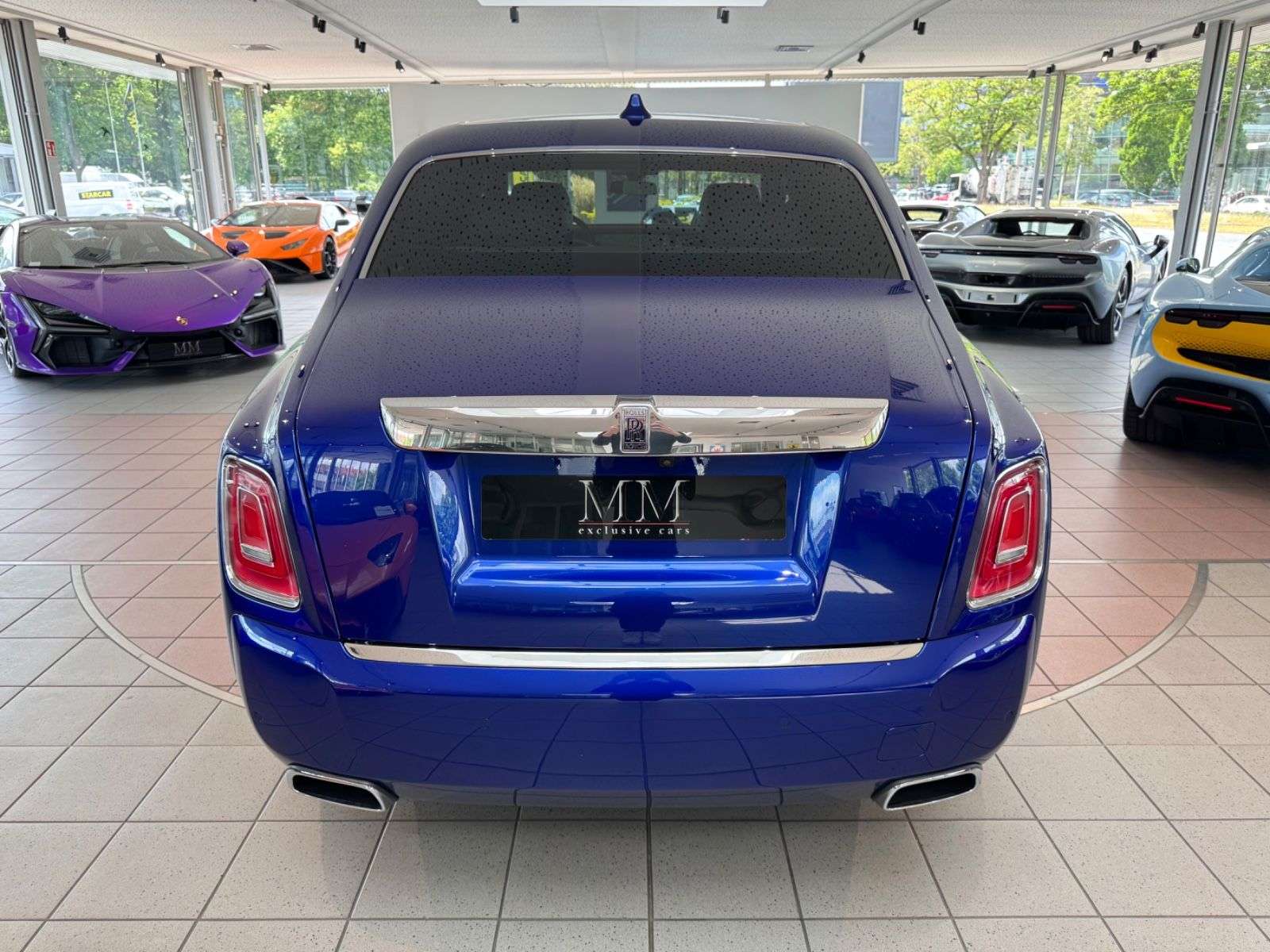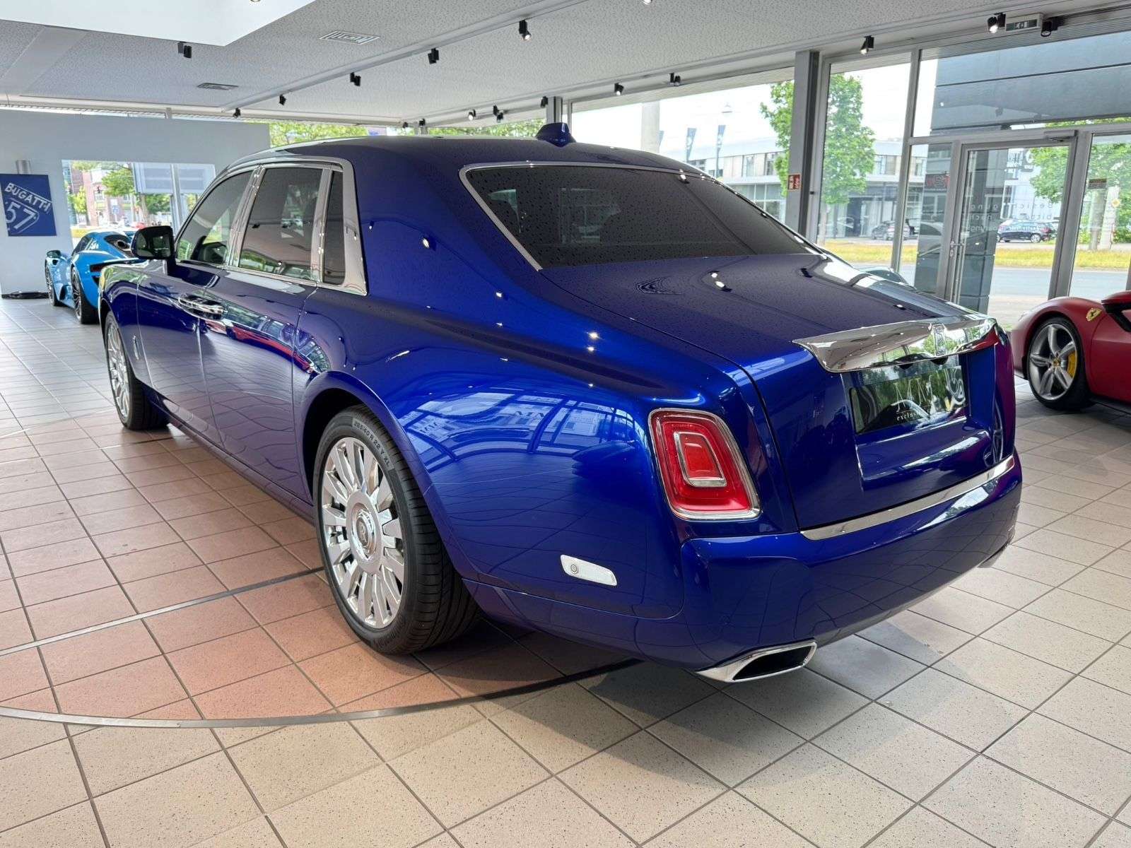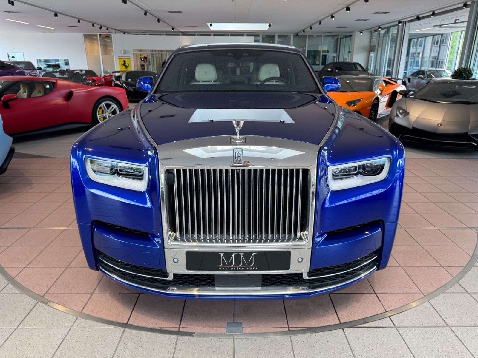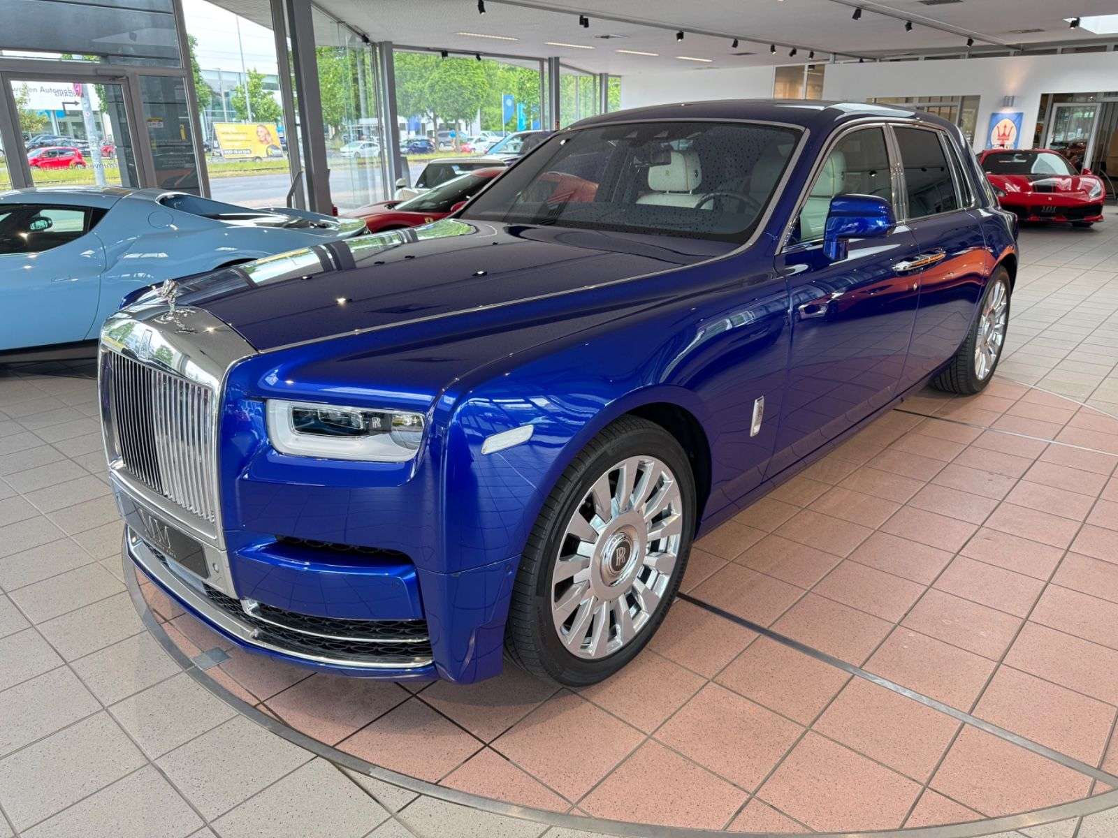 ng:Salamanca Blue MetallicInnenausstattung:Leder in weiss / blau0LLE: Bespoke interior scheme0LAN: RR Monogram to all Headrests0LAP: Full seat piping0LAS: Coloured stitching0RL3: Gefärbtes Lederlenkrad0L1X: Alternative Clock 10L2A: Dekorleisten Edelstahl im Glaskasten0RUE: Edelholzausführung Piano Black0L5A: SoE geprägt in Türverkleidung0RA1: Picknicktisch0REN: Kühlfach für Sitzbank hinten0L1E: Treadplates Phantom0LA0: Regenschirm, zwei-farbigSonderausstattung:0322: Komfortzugang0460: Komfortsitz im Fond elektr. verstellbar04T6: Massagefunktion für Fondsitze04T7: Massagefunktion für Fahrer und Beifahrer05DF: Aktive Geschwindigkeitsregelung05DL: Surround View0610: Head-Up Display0654: DAB-Tuner06FR: Fondentertainment Experience06UK: Night Vision mit Personenerkennung0L0E: Signature Key0REP: Fußstütze für Fond0RPE: Rolls-Royce Bespoke Audio0RRS: SternenhimmelWeitere Ausstattung:0RGK: RR LM Rad Schmiederad Styling 679 vollpoliert02VB: Reifendruckanzeige0319: Integrierte Universal Fernbedienung04NM: Ambient Air Paket0508: Park Distance Control05AC: Fernlichtassistent05AS: Driving Assistant0601: TV-Funktion0609: Navigationssystem Professional0650: CD-ufwerk06AC: Intelligenter Notruf06AE: Teleservices06AK: Connected Drive Services06AM: Real Time Traffic Information06NW: Telefonie mit Wireless Charging06WD: WLAN Hotspot0851: Sprachversion Deutsch0879: Bordliteratur DeutschSonstiges:2.HandDeutsche Erstauslieferung durch Rolls-Royce KölnLückenlos Scheckheft gepflegt bei Rolls-RoyceLetzter Service im September 2024 bei Rolls RoyceUnfallfreiRolls-Royce Garantie gegen Aufpreis auf Wunsch möglich