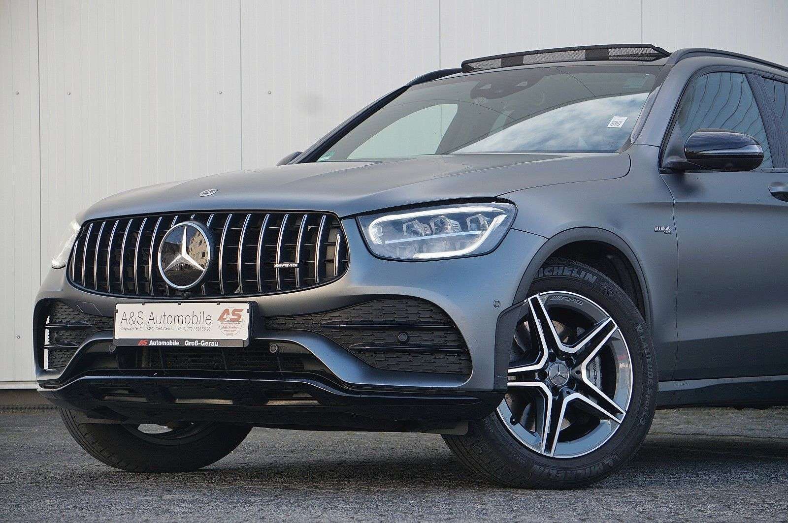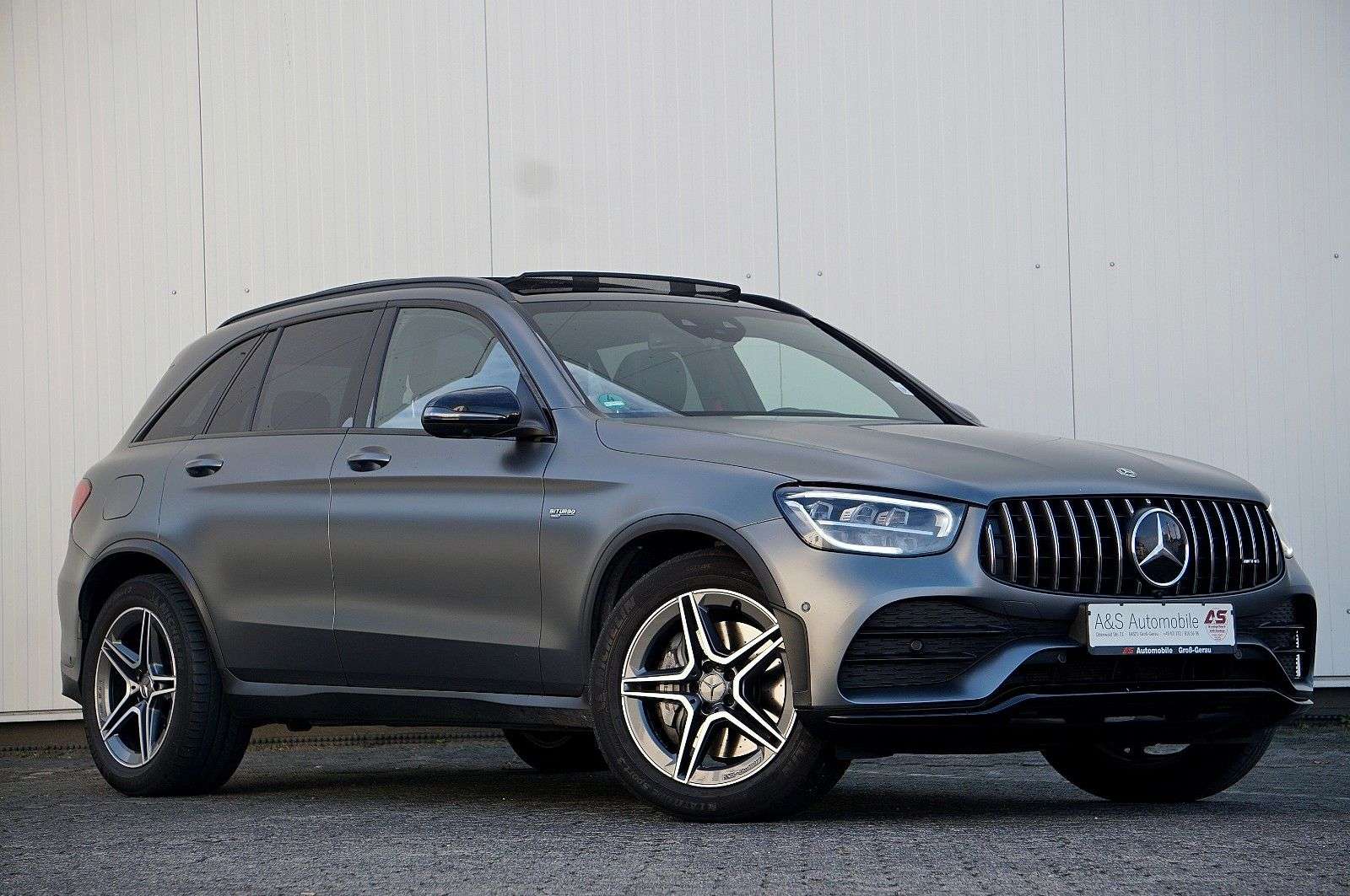 en bei A&S Automobile – Ihrem zuverlässigen Partner für attraktive Gebrauchtwagen. Seit mehr als einem Jahrzehnt stehen wir für geprüfte Qualität, ehrliche Beratung und einen Service, der überzeugt. Zahlreiche zufriedene Kunden bestätigen: Bei uns wird der Fahrzeugkauf zum positiven Erlebnis. Überzeugen Sie sich selbst!Zum Verkauf steht ein hervorragend gepflegter Mercedes-Benz GLC 43 AMG 4-matic mit umfangreicher Sonderausstattung aus 2. Hand. Innen wie außen zeigt sich der AMG in einem erstklassigen, nahezu neuwertigen Zustand.Technisch ist er makellos, unfallfrei und noch vollständig im originalen Erstlack – ohne jegliche Nachlackierungen.Die exklusive Sonderlackierung "designo magno Selenitgrau" sorgt in Kombination mit dem Night-Paket für einen perfekten Auftritt.Besondere Merkmale & Ausstattung im Überblick:2. HandDeutsches Fahrzeug19% MwSt. ausweisbar!Unfallfrei gemäß Mercedes und VorbesitzerAssistenz-Systeme High-End (Abstandstempomat, Spurhalteassistent, Spurwechselassistent, Fernlichtassistent, uvm...)Anhängerkupplung schwenkbar ab WerkPanoramaglasdach elektrischStandheizung360° Kamera mit Park-PaketElektrische Sitze mit Memory-FunktionDAB Radioempfang (Digital)LED-ScheinwerferRote Sicherheitsgurte und rote KontrastziernähteVirtual Cockpit / DigitaltachoNight-PaketLückenlose Mercedes-Benz Servicehistorie - zuletzt bei 77.379 km!Garantiehinweis: Dieses Fahrzeug ist auf Wunsch bis zu 36 Monate auf bis zu 15 Baugruppen garantiefähig. Dank unserer Partnergarantie genießen Sie zudem freie Werkstattwahl deutschlandweit.FIN/VIN: WAUZZZF38K1049234Sonderausstattung:Ambiente-Beleuchtung, Anhängerkupplung schwenkbar, Ausstattungs-Paket: Business, Fahrassistenz-Paket High-End, Gepäckraum-Abtrennung (Netz), Heckklappe mit automatischem Öffnungs- und Schließsystem, Infotainment-Paket High-End, Komfort-Paket Advanced, Lackierung: designo magno, Licht-Paket Advanced, Memory-Paket, Panorama-Schiebedach, Park-Paket High-End, Seitenairbag (Sidebag) hinten, Seitenscheiben hinten und Heckscheibe abgedunkelt, Seitenscheiben vorn Akustikglas, Sicherheitsgurte rot, Sound-System, Sport-Fahrwerk (AMG Ride Control +), Vorbereitung Navigationssystem (Garmin MAP Pilot), Vorrüstung Mobiltelefon/Handy / Komfort-Telefonie / LTE-fähig, Zusatzheizung (Standheizung)Weitere Ausstattung:Adaptives Bremslicht, Airbag Beifahrerseite abschaltbar, Airbag Fahrer-/Beifahrerseite, Aktive Motorhaube, Antriebsart: Allradantrieb, Armaturentafel in Ledernachbildung Artico, Außenspiegel elektr. verstell- und heizbar, beide, Außenspiegel schwarz lackiert, Beckenairbag vorn (Pelvisbag), Blinkleuchte in Außenspiegel integriert, Bremsassistent, Brillenfach im Dachhimmel integriert, Chrom-Paket, Design- und Ausstattungslinie Standard, Digitales Instrumenten-Display, Edelstahlpedale Sportdesign, Einschaltautomatik für Fahrlicht, Einstiegschienen (Edelstahl), Fahrassistenz-System: Agility Select / Dynamic Select (Fahrmodusschalter), Fahrassistenz-System: Attention-Assist (Müdigkeitserkennungs-Sensor), Fahrassistenz-System: Auffahrwarnsystem mit Bremsfunktion (Collision Prevention Assist), Fahrassistenz-System: Berganfahrhilfe, Fahrassistenz-System: Verkehrs-Informations-System Live Traffic, Fahrzeug Setup (Onlinedienste / Apps), Fahrzeug-Monitoring (Fahrzeugortungssystem), Fensterheber elektrisch vorn + hinten, Fernentriegelung Heckdeckel, Feststellbremse elektrisch, Fußmatten AMG, Gepäckraumabdeckung / Rollo, Getränkehalter vorn, Heckleuchten LED, Infotainment-System: Mercedes me connect, Infotainment-System: Remote Online, Innenausstattung: Zierteile Aluminium, Innenhimmel schwarz, Innenraumlicht-Paket, Isofix-Aufnahmen für Kindersitz an Rücksitz, Karosserie: 5-türig, Keyless Go Startanlage, Klimaautomatik (Thermatic 2-Zonen), Knieairbag Fahrerseite, Kopf-Airbag-System (ndowbag), Kraftstofftank: vergrößert, Kühlergrill Diamant-Optik, LM-Felgen, Mercedes-Benz Notrufsystem, Modellpflege mit Code, Motor 3,0 Ltr. - 287 kW KAT, Radstand 2873 mm, Reifendruck