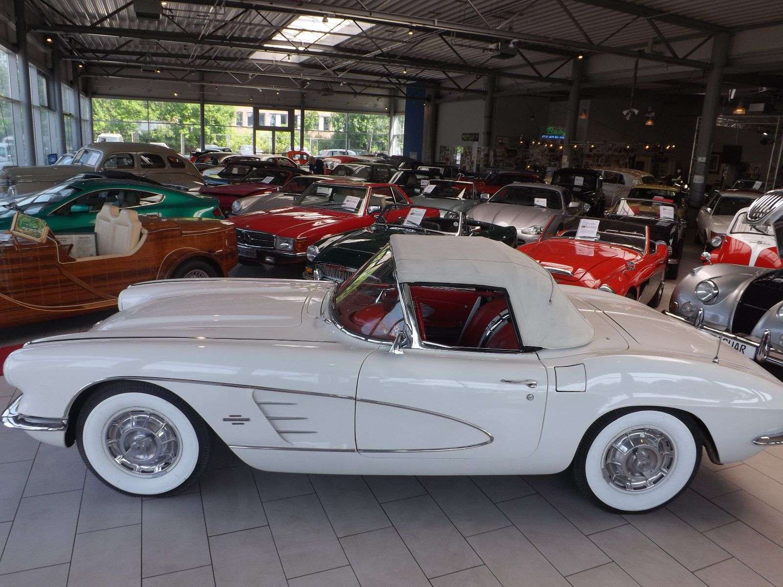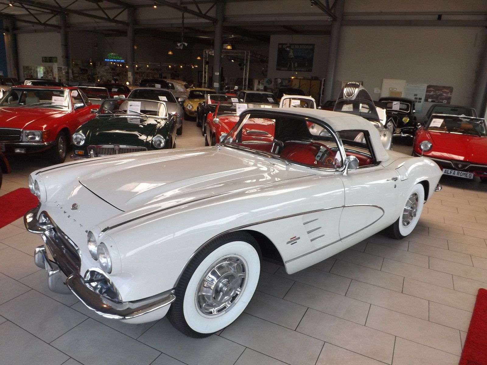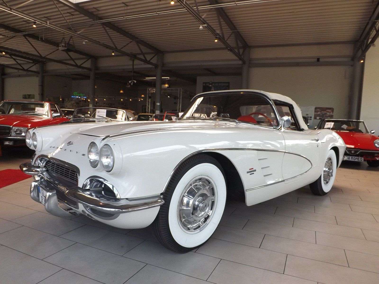 wird wohl eine der schönsten Corvette C1 angeboten, die momentan auf dem internationalen Oldtimermarkt zur Verfügung stehen. Diese Corvette C1 ist praktisch makellos und technisch so perfekt, dass sie eigentlich dem damaligen Neuzustand entspricht, als sie die Fabrikationshalle als Neufahrzeug verlassen hat. Und so wie sie aussieht, so fährt sich auch: Perfekt! Erst kürzlich wurde sie technisch für fast 10.000 Euro noch einmal komplett durchgesehen und alle nötigen Bauteile teilweise in den Neuzustand versetzt oder es wurden schlicht und einfach neue Bauteile montiert. Das Ergebnis ist entsprechend und spricht für sich selbst. Aber auch die Farbzusammenstellung ist genial: Die weiße Außenlackierung strahlt schon optisch eine automobile Erhabenheit aus, die dann noch intensiviert wird durch die komplette rote Innenausstattung. Diese Farbkombination ist äußerst selten und die Sehgewohnheiten bekommen eine neue Dimension. Somit setzt sich die hier von uns angebotene Corvette C1 deutlich von allen anderen Corvette C1 ab und kann letztendlich mit keiner anderen Corvette C1 verglichen werden. Diese erstklassige und wunderschöne Corvette steht nun zufälligerweise zum Verkauf, weil die Witwe des verstorbenen Eigentümers nicht in der Lage ist, dieses reinrassige amerikanische Sportcabriolet zu beherrschen. Herzlich Willkommen in der elitären Welt der fantastischen Fahrzeuge. Wenn Sie weitere Oldtimer suchen die wir im Internet anbieten, googeln Sie einfach „Michael Fröhlich Mobile.de“. Fertig! Telefonischer Kontakt wird sofort bearbeitet. E-Mails dauern etwas länger. (Bitte eigene Telefonnummer angeben) Verkauf im Kundenauftrag! Irrtümer vorbehalten.