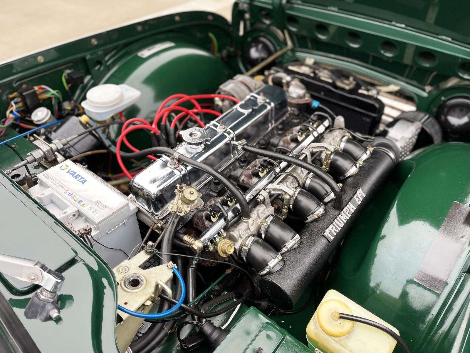 en weitere 86 hochaufgelöste Bilder auf unserer Homepage: www.nic-sportwagen.de.KLASSIK TRIFFT MODERNE Erleben e das ultimative Fahrgefühl mit dem wunderschönen Triumph TR 250 in frischem Racing Green! Dieses unglaubliche Fahrzeug wurde von den absoluten Spezialisten von Triumph restauriert und mit einer Kraftstoffeinspritzung mit elektronisch gesteuertem Motormanagement versehen, die die Agilität und die Zuverlässigkeit des Wagens auf ein neues Level hebt. Mit 144 PS unter der Haube ist dieser Triumph ein Traumwagen für jeden Kenner! Doch dieser Triumph TR 250 mit moderner Kraftstoffeinspritzung ist nicht nur leistungsstark, sondern auch äußerst selten. Die Kombination aus restauriertem Zustand und moderner Technologie macht ihn zu einem einzigartigen Schmuckstück, das seinesgleichen sucht. Der nachträglich installierte geregelte Katalysator mit Lambdasonde sorgt dafür, dass der Wagen bei jedem Wetter und zu jeder Jahreszeit wie ein Kätzchen schnurrt. Der vorherige Besitzer hat diesen 1968 ausgelieferten Triumph TR 250 seit der Jahrtausendwende liebevoll gepflegt und gewartet. Der Wagen ist nur schwer mit anderen Modellen auf dem Markt zu vergleichen und wird nur verkauft, weil der Besitzer verstorben ist. In den letzten Jahren wurde der Wagen extrem gut in Stand gehalten, so dass er heute in einem makellosen Zustand ist. Lassen e sich diese Möglichkeit nicht entgehen, ein Stück Automobilgeschichte zu besitzen. Allein der Umbau der Kraftstoffeinspritzung hat weit über 10.000 Euro gekostet. Dieser Triumph TR 250 ist ein wahres Juwel und wird sicherlich viele weitere Jahrzehnte lang für Freude und Fahrspaß sorgen. Warten e nicht länger und sichern e sich diesen Traumwagen noch heute!FIRMEN-GESCHICHTE VON TRIUMPH Triumph war ein britischer Hersteller von Motorrädern und Autos, der 1885 gegründet wurde. Die Firma entwickelte sich schnell zu einem der bedeutendsten Hersteller von Motorrädern und trug dazu bei, das britische Motorradfahren weltweit bekannt zu machen. In den 1920er Jahren begann Triumph mit der Produktion von Automobilen und produzierte einige ikonische Modelle wie den TR3 und den Spitfire. Eines der weniger bekannten, aber dennoch wichtigen Modelle in der Geschichte von Triumph ist der TR 250. Der Wagen wurde 1967 vorgestellt und war eine verbesserte Version des TR4A. Der TR 250 wurde in einer Zeit produziert, als sich Triumph bemühte, eine breitere Käuferschicht zu erreichen und sich auf den amerikanischen Markt zu konzentrieren. Der TR 250 war in der Tat eine Ikone seiner Zeit und wurde aufgrund seiner Leistung und seines Aussehens von vielen Autoliebhabern geschätzt. Die Produktion des Wagens endete jedoch bereits 1968, da sich Triumph zu dieser Zeit auf die Produktion von größeren Fahrzeugen konzentrierte. Trotz seines kurzen Lebens ist der Triumph TR 250 heute bei Sammlern und Autoliebhabern auf der ganzen Welt sehr begehrt. Der Wagen repräsentiert nicht nur die Geschichte von Triumph, sondern auch die Ära der britischen Sportwagen. Heute sind nur noch wenige Modelle des Triumph TR 250 auf der Straße zu sehen, und wer das Glück hat, einen zu besitzen, hat einen wahren Schatz in den Händen!Unsere Empfehlung: Youngtimer sind eine Wertanlage. Altes Blech kann sich als echtes Garagengold erweisen.AUSSTATTUNGFarbe außen: British Racing GreenFarbe innen: Lederausstattung schwarzVerdeck: Stoff schwarzVollrestauration um die Jahrtausendwende, seitdem nur ein BesitzerKraftstoffeinspritzung mit elektronisch gesteuertem Motormanagement, Lambdasonde undKatalysatorSpeichenfelgenTeppichbodenHolz-ArmaturenbrettHolz-LenkradHolz-SchaltknaufChrom-StoßstangenChrom-Ge Chrom-Anbauteile ∗ ECU steht für Engine Control Unit (oder auf Deutsch: Motorsteuergerät)Wir sprechen EnglischFinanzierung/Leasing möglichInzahlungnahme möglich (Fahrzeuge aller Art)Verkauf im Kundenauftrag ohne Gewährleistung.Ansprechpartner: Herr BrechtWhatsApp: +49 171 3159555Ein Angebot von: NIC Sportwagen Hamburg (27 Jahr