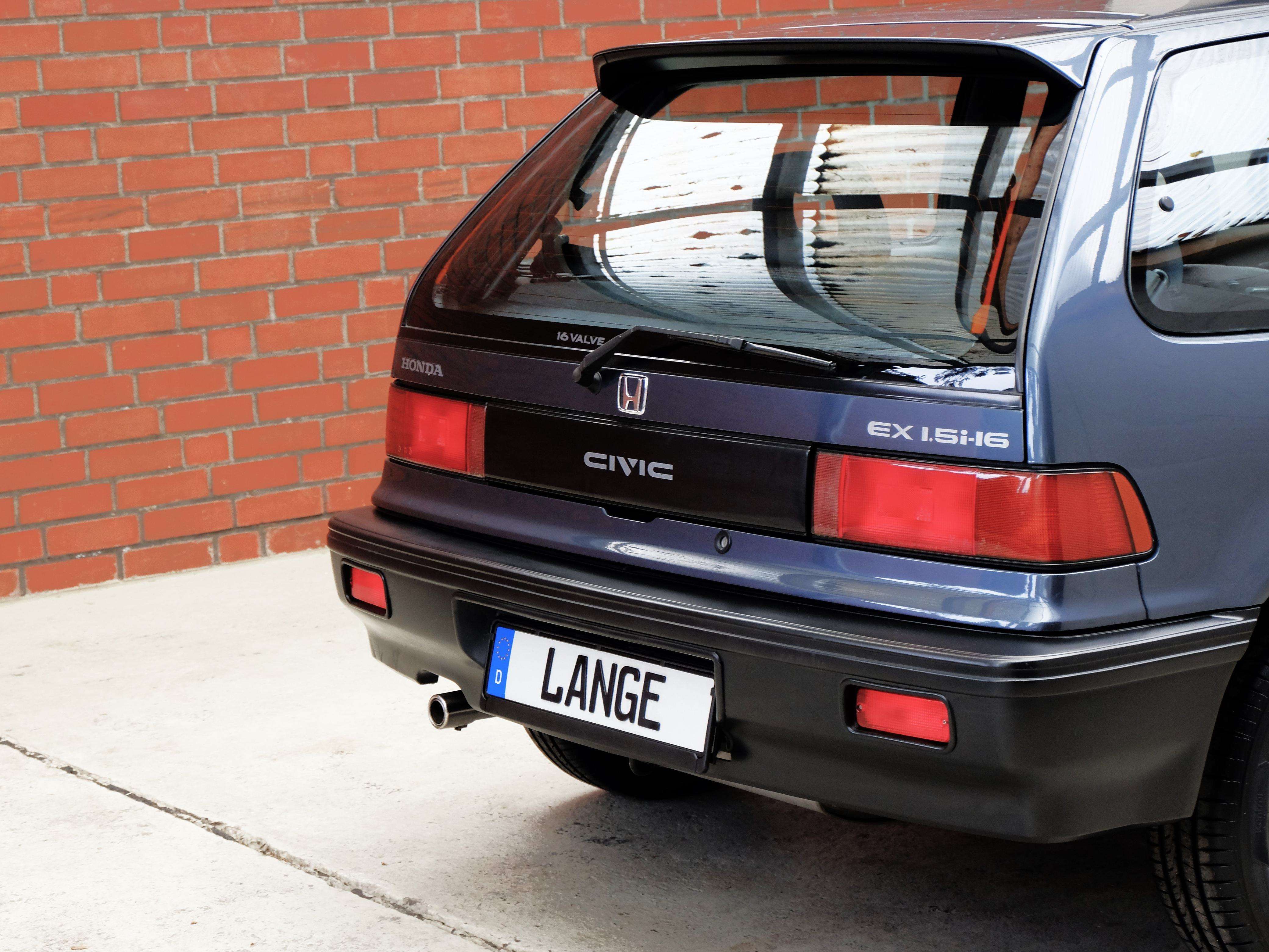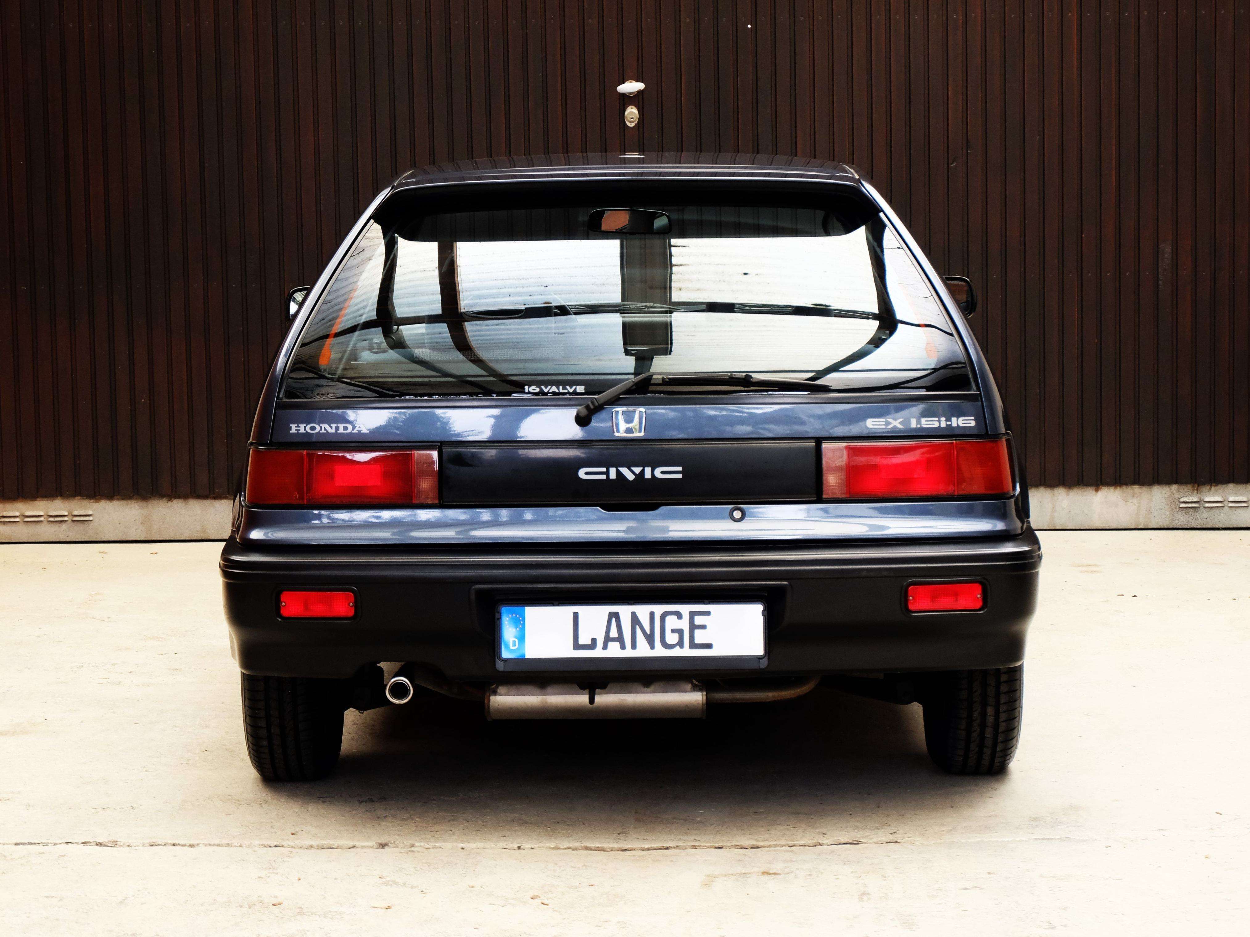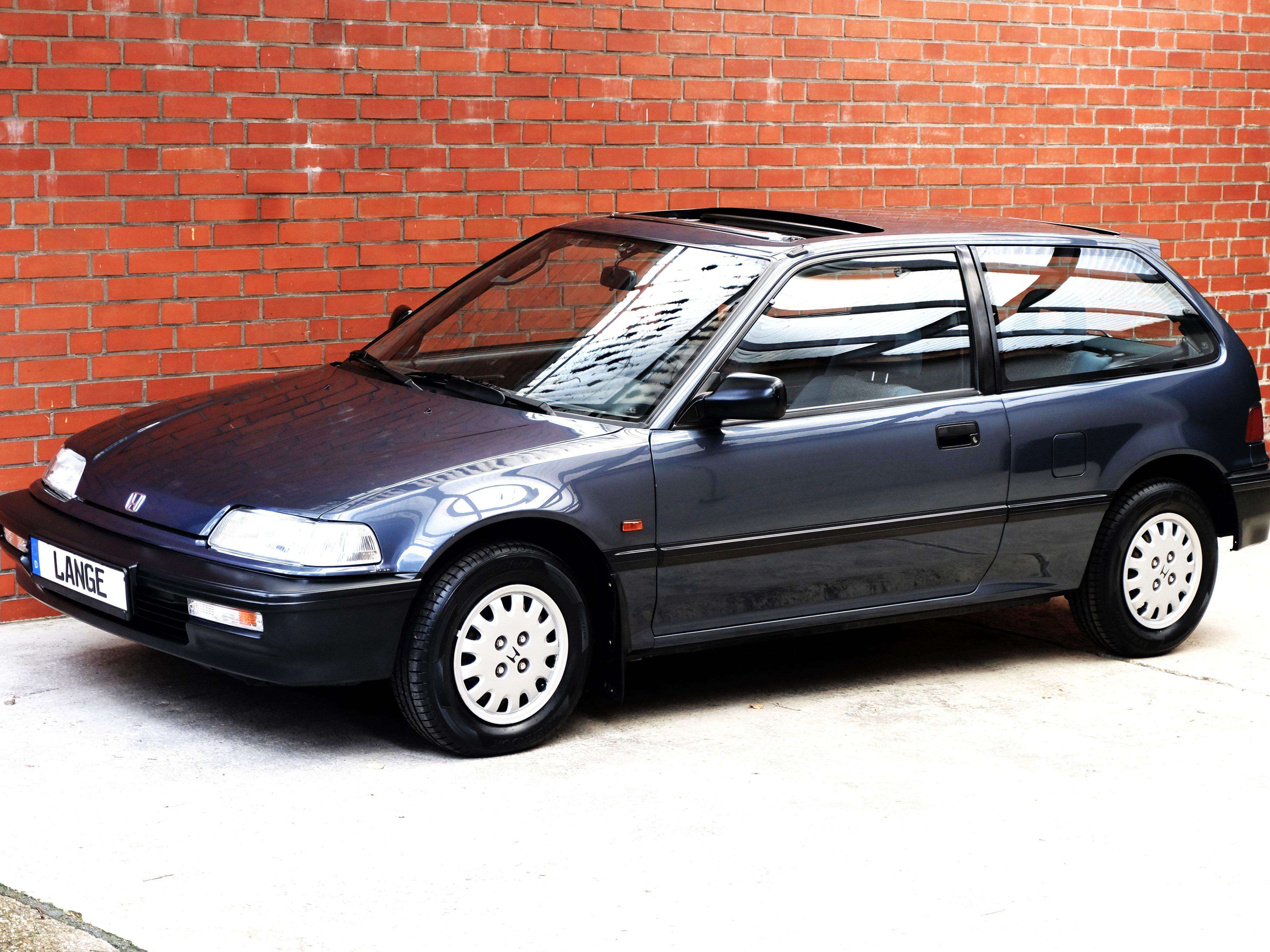a Civic ist ein Kompaktmodell und wurde in der vierten Generation von 1987 bis 1991 als 3-türer, als 4-türige Limousine und als sportliches Coupe CRX gebaut. Es war ein revolutionär modernes und sportliches Fahrzeug, das ein sehr elegantes, gradliniges sign hatte, besonders die 3-türigen Modelle und die CRX Coupes waren wohlproportioniert und sahen durch die großen Glasflächen und die geringen Überhänge sehr sportlich aus. Sie sahen nicht nur sportlich aus, sondern waren es auch. Ein modernes Fahrwerk in Verbindung mit sehr aufwendigen und modernen Leichtmetall-Motoren mit Einspritzung, geregeltem Katalysator und 16 Ventilen verhalfen den Fahrzeugen zu sehr guten Fahrleistungen, die Fahrwerke mit Einzelradaufhängung an doppelten Querlenkern waren entsprechend ausgelegt und boten große Sicherheitsreserven. Die kompakten 3-türer und CRX fahren sich wie Go-Karts und Dank Servolenkung spielend leicht. Auch nach heutigen Maßstäben fährt sich ein Honda Civic modern und sicher. Im Unterschied zu den heutigen Fahrzeugen ist die Aussicht und Übersicht hervorragend, dadurch wird einem ein großzügiges Platzangebot vermittelt. Die Verarbeitungsqualität war hervorragend und übertraf damals sogar die der deutschen Hersteller. Unser Honda Civic 1.5i-16V ist in die Schweiz erstausgeliefert. Frau Gertrud – Eberle-Fischer geb. 05.03.1926 hat den Honda am 05.06.1991 beim örtlichen Honda Händler Garage P. Schmidfi in Zürich gekauft. Als frisch gebackene Rentnerin bestellte Frau Eberle-Fischer den Honda in Wien Blau Metallic, mit einem 4-Gang Automatik-Getriebe und einem elektrischem Glas-Schiebedach. In der Folgezeit brachte Sie den Civic regelmäßig zur Inspektion zum örtlichen Honda - Vertragshändler. r Civic ist unfallfrei und vollkommen rostfrei. Er hat minimalste Gebrauchsspuren und sieht einem Jahreswagen ähnlich. Er wurde nicht im Winter benutzt, der Innenraum ist neuwertig, der Motorraum und Kofferraum sind unglaublich sauber und sehen aus wie am ersten Tag. Er hat wenige Gebrauchsspuren und vermittelt Jahreswagenfeeling.Alle Bordbücher, Werkzeuge und 4 Schlüssel sind vorhanden. Wir haben an dem Civic nun eine Durchsicht gemacht, neue Reifen montiert und werden noch einen TÜV mit H-Kennzeichen machen, so das er dann nur 192,-- KFZ-Steuer im Jahr kostet und mit einer sehr günstigen Oldtimer Versicherung versichert werden kann. Auch in Umweltzonen darf er einfahren.Ihnen einen solch phantastisch erhaltenen Honda Civic anbieten zu können ist uns ein großes Vergnügen und nicht alltäglich, wir sind davon überzeugt, dass es sich um einen Klassiker mit guten Wertzuwächsen handelt, der richtig viel Freude bereitet und ein zuverlässiger Begleiter ist. Zögern Sie nicht lange, es handelt sich um ein sehr seltenes Angebot, er ist nicht günstig aber richtig gut.Ausstattung:4-Gang-Automatik mit Wandlerüberbrückungelektronische, programmierte Kraftstoffeinspritzung (Hoinda Dual Point Injection)TransistorzündungZahnstangenblenkung mit ServounterstützungGeregelter 3-Wege-Katalysator 94 PSBremskraftverstärkerScheibenbremsen vornStabantenneVon innen verstellbare Außenspiegel Fahrer- und BeifahrerseiteVerbundglas FrontscheibeGetönte Scheiben rundumElektrische ScheibenwaschanlageIntervallschaltung der ScheibenwischerRücksitzlehnen einzeln umklappbarMetallic LackierungHeckscheiben-Wisch-WaschanlageBeheizbare Heckscheibe4-stufiges Heizungs- und BelüftungssystemUmluftschaltungKofferraum und Tankklappe vom Fahrersitz aus entriegelbarHalogenscheinwerfer2 Rückfahrscheinwerfer2 NebelschlussleuchtenAusstellfenster hintenHandbrems-KontrolleuchteTageskilometerzählerDigitaluhrWarnsignal für Lichtabschaltung3-Punkt-Automatik-Sicherheitsgurte vornZwei 3-Punkt-Automatik-Sicherheitsgurte plus 1 Statik-Beckengurt hintenKopfstützen vornKopfstützen hintenSeitlich schwenkbare Sonnenblende vornStoffpolsterTeppichbodenKunstoffinnenkotflügel vornSteinschlagversiegelung an besonders gefährdeten KarosserieteilenHohlraumkonservierungUnterbodenschutzSchmutzfänger vornServolenkungHöhen