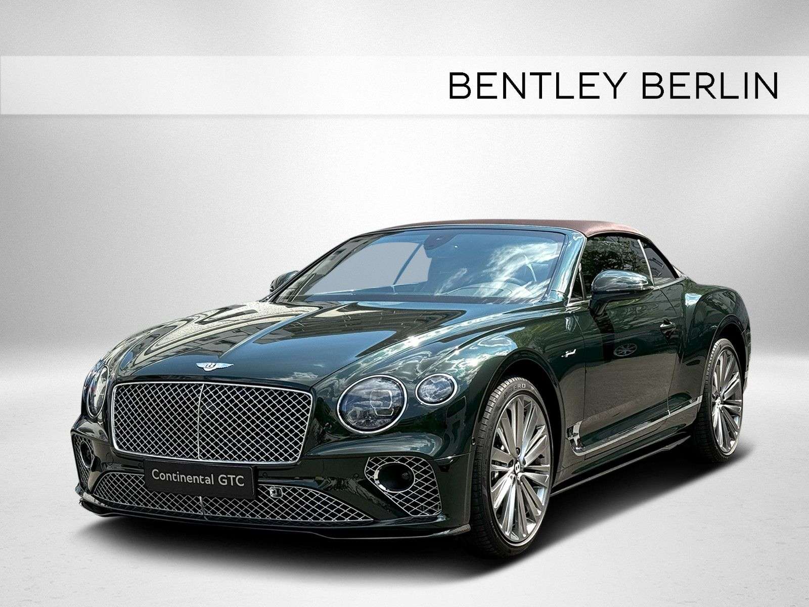 D - Sonderlackierung - NAIM Sound System - Rotating Display -Außenfarbe: Cumbrian GreenVerdeck: Dark BrwonInnenfarbe: Linen mit Burnt OakDekor: Engine Turned Aluminium - hellAUSSTATTUNG :Sonderlackierung "Cumbrian Green"Dekoreinlagen Engine Turned Aluminium- hell Kontrastkeder für Fußmatten in "Linen"LED Welcome LampsKomfort Spezifikation für VordersitzeGrill und untere Lufteinlässe hell verchromtHochflorige Teppichmatten vornNAIM for Bentley Sound System Bentley Rotating Display TV-Tuner GaragentoröffnerValet Parking SchlüsselWelcome Lighting BegrüßungslichtVerdeck in dunkelbraun " Dark Brown"Kontrastnähte in "Linen"22" Speed Felgen - dunkel getöntLuft IonisatorInduktive TelefonlademöglichkeitMood Lighting - Ambientebeleuchtung Steinschlagschutzfolie für Vorderwagen Styling Specification - Carbon Exterior Paket Touring Specification Head-Up Display, Spurhalteassistent, Night Vision - Nachtsichtassistent, Stauassistent, Bentley Safeguard Plus - Pre-Safe-Bremsfunktion, Adaptive Cruise Control (ACC) Änderungen, Irrtum sowie Zwischenverkauf vorbehalten. BENTLEY BERLIN