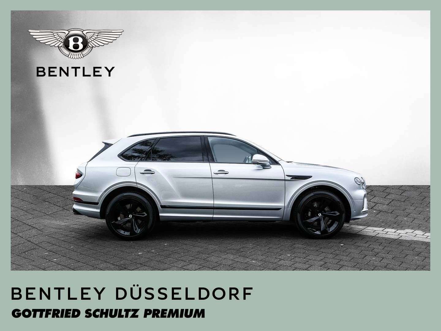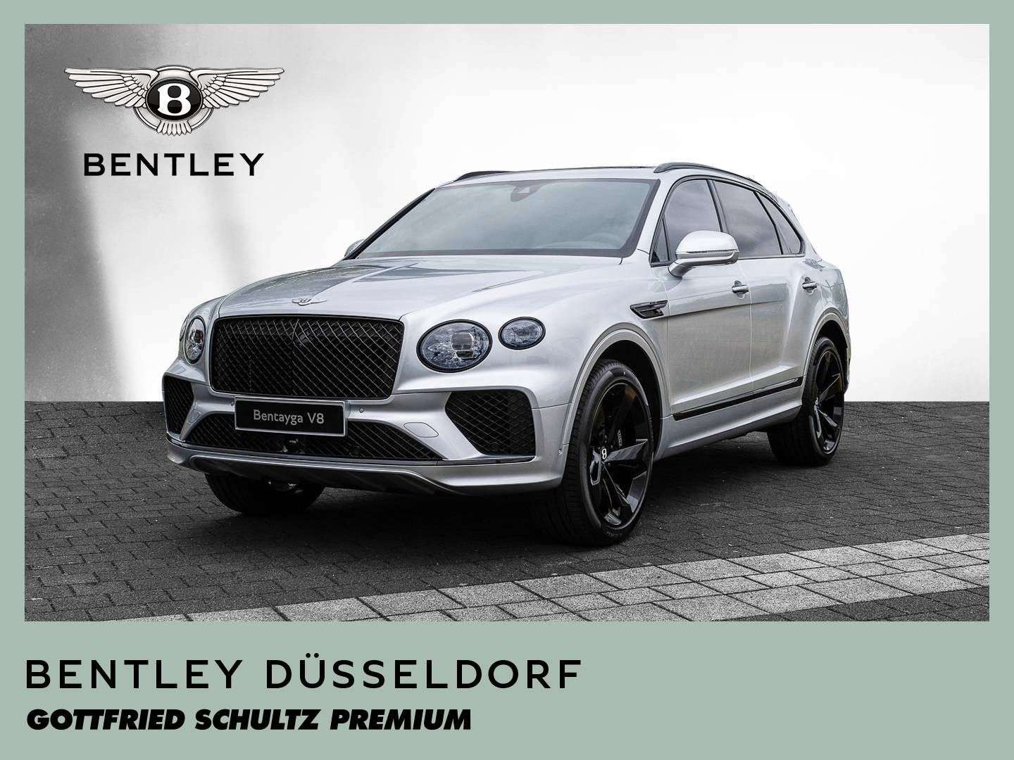 des Fahrzeuges: DüsseldorfBentley Bentayga V8NeufahrzeugFarbkombination:Außenfarbe: Moonbeam (silber)Hauptleder: Beluga (schwarz)Zweitleder: Beluga (schwarz)Furnier: Piano BlackSonderausstattung:Extended Range Lackierung in Moonbeam22“ Leichtmetallrad im 5-Speichen-Design "Directional", schwarz lackiertBlackline SpecificationTouring Specification- ACC – Abstandregeltempomat- Kollisionswarnungssystem „Bentley Safeguard Plus“- Head-Up Display- Spurhalteassistent- Nachtsichtassistent „Night Vision“- auassistent „Traffic Assist“Furnier in Piano BlackKomfortausstattung für die VordersitzePrivacy Glas - getönte Heck- und hintere Seitenscheiben3-Speichen Lederlenkrad, 1-farbig, beheiztAmbientebeleuchtunggestickte Bentley-Embleme auf den SitzenSportpedalerie hochflorige Fußmatten mit Ledereinfassung vorne und hintenBentley Dynamic Ride"Bang & Olufsen for Bentley" Highend AudiosystemLED Welcome Lamps - BegrüßungslichtGaragentoröffner, 3-fachBatterieladezustanderhaltungsgerät...Änderungen, Zwischenverkauf und Irrtümer vorbehalten.