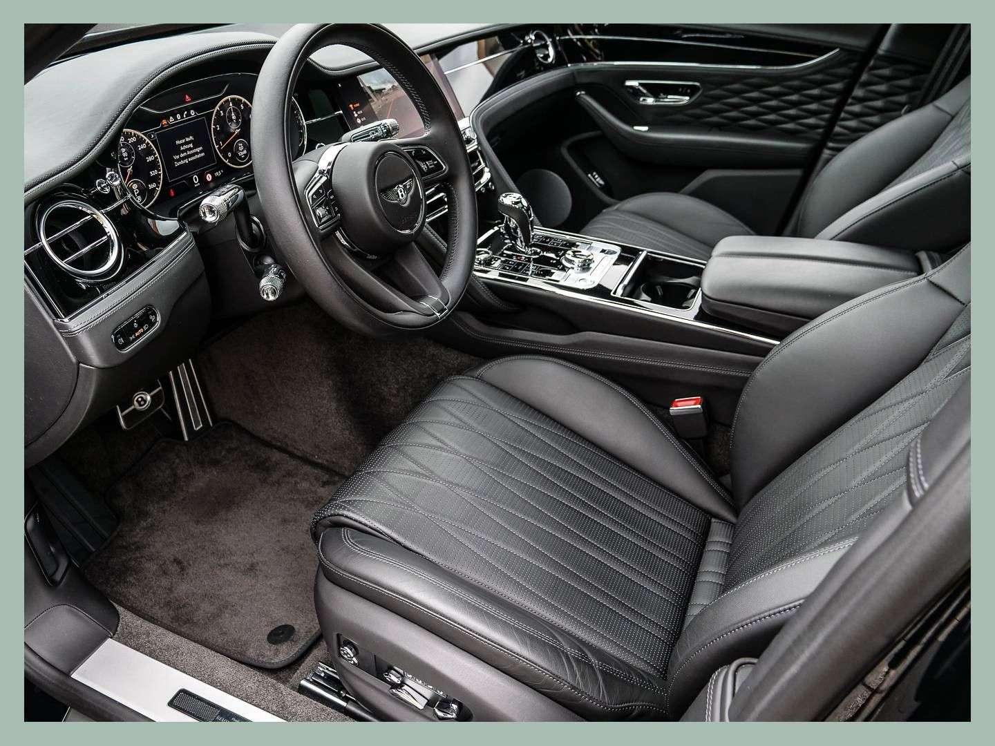 des Fahrzeuges: DüsseldorfBentley Flying Spur V8Fahrzeug aus VorbesitzFarbkombination:Außenfarbe: Onyx (schwarz)Hauptleder: Beluga (schwarz)Furnier: Piano BlackSonderausstattung:22" Leichtmetallfelgen im 10- Speichen-S-Design, schwarz lackiertMulliner Driving SpecificationTouring Specification- ACC - Abstandregeltempomat- Kollisionswarnungssystem „Bentley Safeguard Plus“- Head-Up Display- Spurhalteassistent- Nachtsichtassistent „Night Vision“- auassistent „Traffic Assist“City Specification- Selbst-dimmende Außenspiegel- City Assist- elektr. Gepäckraumklappe berührungslos öffnend uvm.Blackline Specification- Türgriffe schwarz glänzend lackiert- Einfassung der Frontscheinwerfer und Heckleuchten - schwarz glänzend lackiert- Untere Zierelemente ausßen am Fahrzeug - schwarz glänzend lackiert uvm.yling Specification- vordere Carbon Splitter- oßfängerunterlippe aus Carbon- Heckdiffuser aus Carbon- seitliche Unterlippe aus CarbonPanoramadachBentley Dynamic Ride mit Hinterachslenkungandheizung (Bedienung über Smartphone)Ambientebeleuchtung inkl. beleuchtete EinstiegsleisteChromstreifen im Armaturentafelfurnier und in den TürfurnierenInduktive Telefonlademöglichkeit (vorne)LED Bodenbeleuchtung mit Bentley-Emblem vor Türen...Änderungen, Zwischenverkauf und Irrtümer vorbehalten.