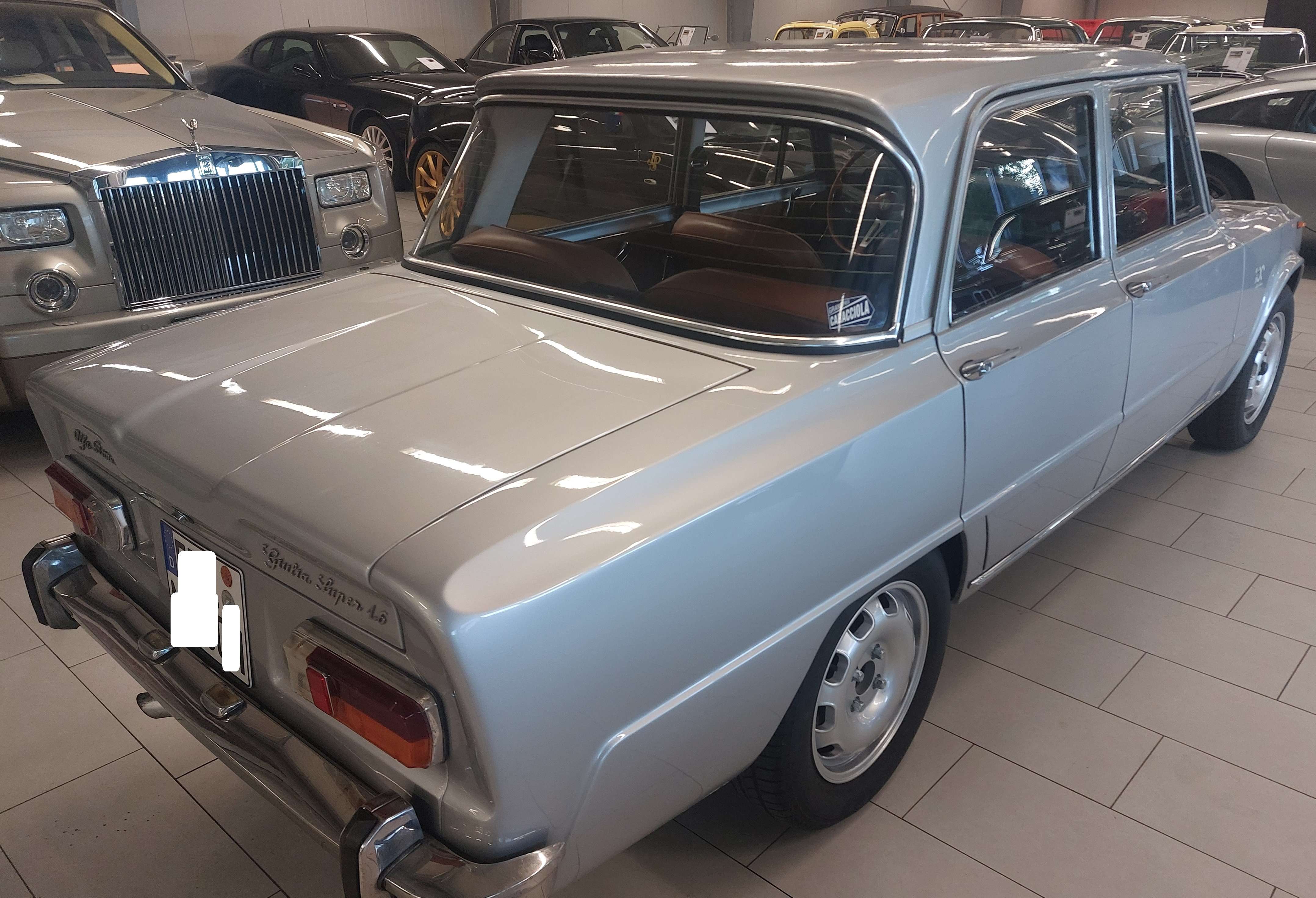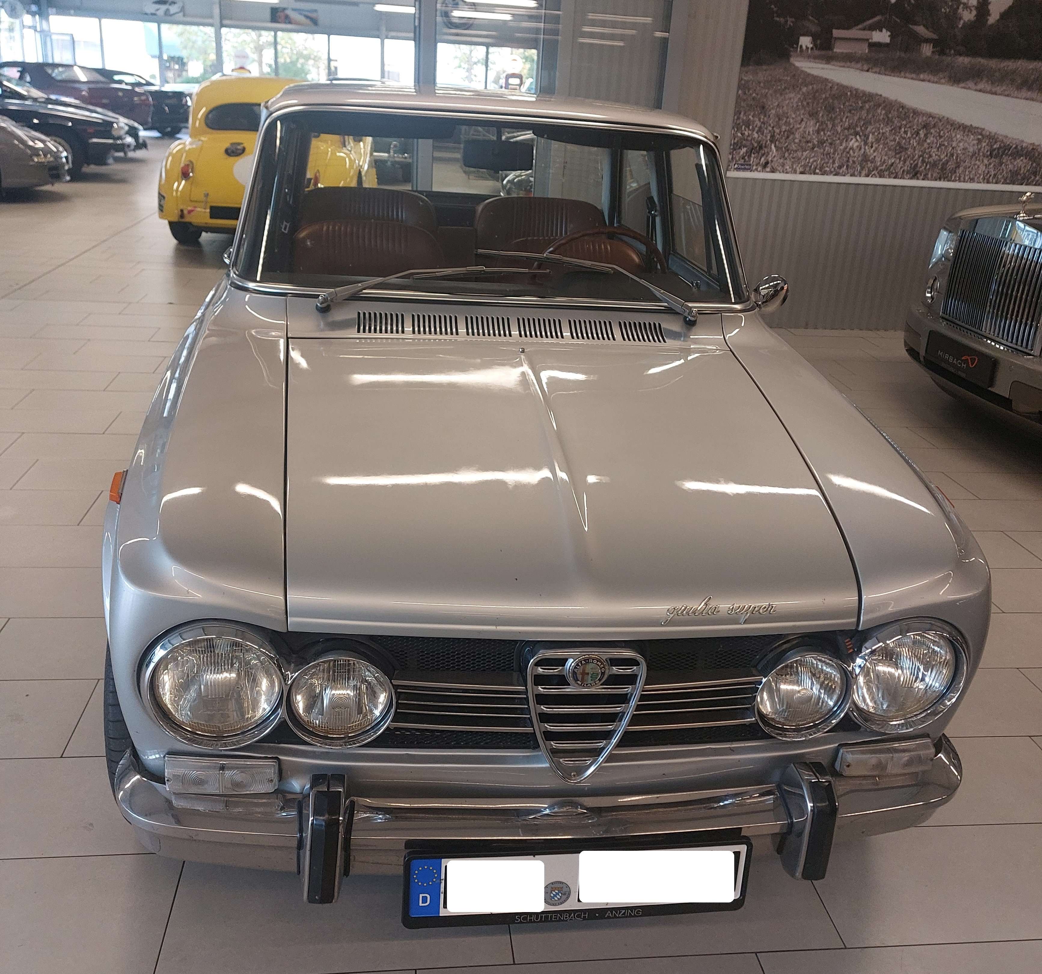 r 2023 / 2024 wurde die Technik im Wagen umfassend revidiert und restauriert, dazu folgende Einzelheiten:Motor überholt und optimiert, dafür:Motor komplett zerlegt, gereinigt und überprüft. Zylinderkopfgeplant, Ventilsitze erneuert, Ventile eingeschliffenMotor mit neuen Teilen zusammengebautSteuerzeiten und Ventile eingestelltAlle Dichtungen erneuertPleuel anpassen lassenDazu wurden u.a. folgende Neuteile verbaut:SPORTKOLBEN, ZYLINDERLAUFBUCHSEN, MOTORDICHTSATZ, ZKD ALFA, HAUPTLAGERSATZ, PLEUELLAGERSATZSATZ, SPORTNOCKENWELLE, VENTILFÜHRUNG, SCHWUNGRAD, STEUERKETTE UNTEN, STEUERKETTE MOTORAUFHÄNGUNG 1300-2000 NORD AUS, MOTORAUFHÄNGUNG 1300-2000 NORD EIN, ABDECKUNG BENZINPUMPEN, UMBAU BENZINPUMPE, SATZ KÜHLWASSERSCHLÄUCHE, VENTILFEDER SATZ, PLEUELMUTTER, KUPPLUNGSATZ, H SCHAFT PLEUELSATZ, SIMMERRING KW HINTEN, SIMMERING KW VORNE, ANLAUFSCHEIBE KETTENRAD, KEIL KETTENSPANNER, SCHRAUBE KETTENSPANNER, FEDER KETTENSPANNER, SATZ GUMMI REAKTIONSDREIECK, 123 VERTEILER ALFA, KURBELWELLE 1600 TAUSCH, SILIKONDICHTMITTEL, AUSLAßVENTIL, SATZ ANSAUGFLANSCHE ALU, WASSERPUMPE, SAUGROHR ALFA, STEHBOLZEN, SCHEIBE, HOSENROHRDICHTUNG, SICHERHEITSGURT GIULIA, 2-PUNKT SICHERHEITSGURT, BENZINFILTER, ÖLFILTER FT5682, ZÜNDKERZE BPR9EIX, ÖLDRUCKSCHALTER, HOCHLEISTUNGSGETRIEBEÖL, HEIZVENTIL 1.SERIE, HEIZZUG, DÜSENSATZ WEBERVERGASER, RÜCKZUGFEDER KIT Vergaserumbau auf Weber Vergaser (Originalvergaser undicht und schlechteinstellbar passend zu verbauten Komponenten)Motor eingefahrenÖlwechsel nach Einlaufen des MotorsHeizung in stand gesetzt, neues Heizungsventil eingebaut, dafür: Heizungskasten zerlegt, gereinigt und Heizungskühler gespült.123 Verteiler + Gurte für Alfa BertoneBremsflüssigkeit erneuert, dazu System entlüften.Kupplungsnehmerzylinder inkl. Anschlußschlauch gewechselt.Regler nach Herstellerangben eingestellt 2x Leitung, Kabelanschlüssel, Spannungsregler und D+ Klemme erneuert.Spannungsregler lackiert und restauriert, Löcher für Platzierunggebohrt. Scheibenwaschpumpe und Schlauchstück erneuert.Neue Bremsen verbaut---Probefahrt und Sichtprüfung des Fahrzeuges auf der Hebebühne sind selbstverständlich nach kurzer Absprache möglich.Als versierter Fachbetrieb verfügen wir über eine eigene Werkstatt.Unser erfahrenes und speziell geschultes Mechaniker-Team steht bereit für Service, Reparaturen und individuelle Änderungswünsche am Fahrzeug.Alle unsere Verkaufsfahrzeuge finden Sie gesammelt auf unserer homepage unter www.mirbach.deWir freuen uns auf Sie!