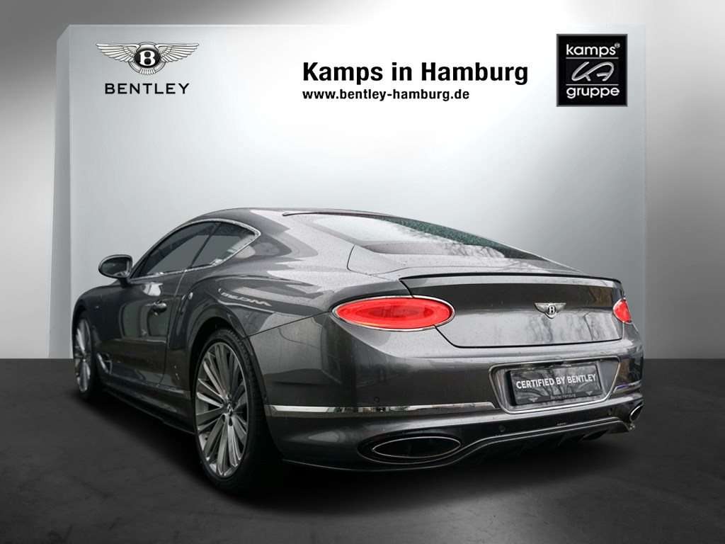gPortlandHerzlich Willkommen bei Bentley Hamburg - dem größten Bentley Showroom Europas! Vielen Dank für Ihr Interesse an unseren exklusiven Produkten.Als offizieller Bentley-Händler verfügen wir über ein umfangreiches Angebot an Neu-, Bestell- und Fahrzeugen aus Vorbesitz. Bentley Continental GT Speed W12 Außenfarbe: TungstenInnenfarbe: Beluga & Portland, Speed Colour Split Veneer: High Gloss Carbon Fibre Die Erstauslieferung und Werkstattbetreuung erfolgte durchweg bei Bentley Hamburg.Der Listenpreis beläuft sich auf 279.860 EUR zzgl. MwSt. + Überführung basierend auf der Herstellerangabe. Bentley-Dealer-Services:23.12.2021 / 27 km - Auslieferungsdurchsicht - Bentley Hamburg13.03.2023 / 16.434 km - 1. Jahresinspektion - Bentley Hamburg18.04.2024 / 32.160 km - 2. Jahresinspektion - Bentley Hamburg Zu der umfangreichen Serienausstattung besitzt dieses Fahrzeug noch folgende Sonderausstattungen: Extended Range - Solid and MetallicLED Welcome LampsTouring SpecificationFront Seat Comfort SpecificationBright Chromed Matrix Style Grille to Radshell and Lower Bumper AperturesDeep Pile Overmats - FrontBattery Charger - European AdaptorBang & Olufsen for BentleyBentley Rotating DisplayRemote Controlled Garage Door OpenerWelcome LightingContrast Stitching22" Speed Wheel - Dark TintFresh Air Intake and Air IonizerDiamond KnurlingInductive Phone ChargerLeather SpecificationMood Lighting Specificationngle Finish - High Gloss Carbon FibreCarbon Ceramic Brakes with Red Painted Calipers Änderungen, Irrtümer und Zwischenverkauf vorbehalten.