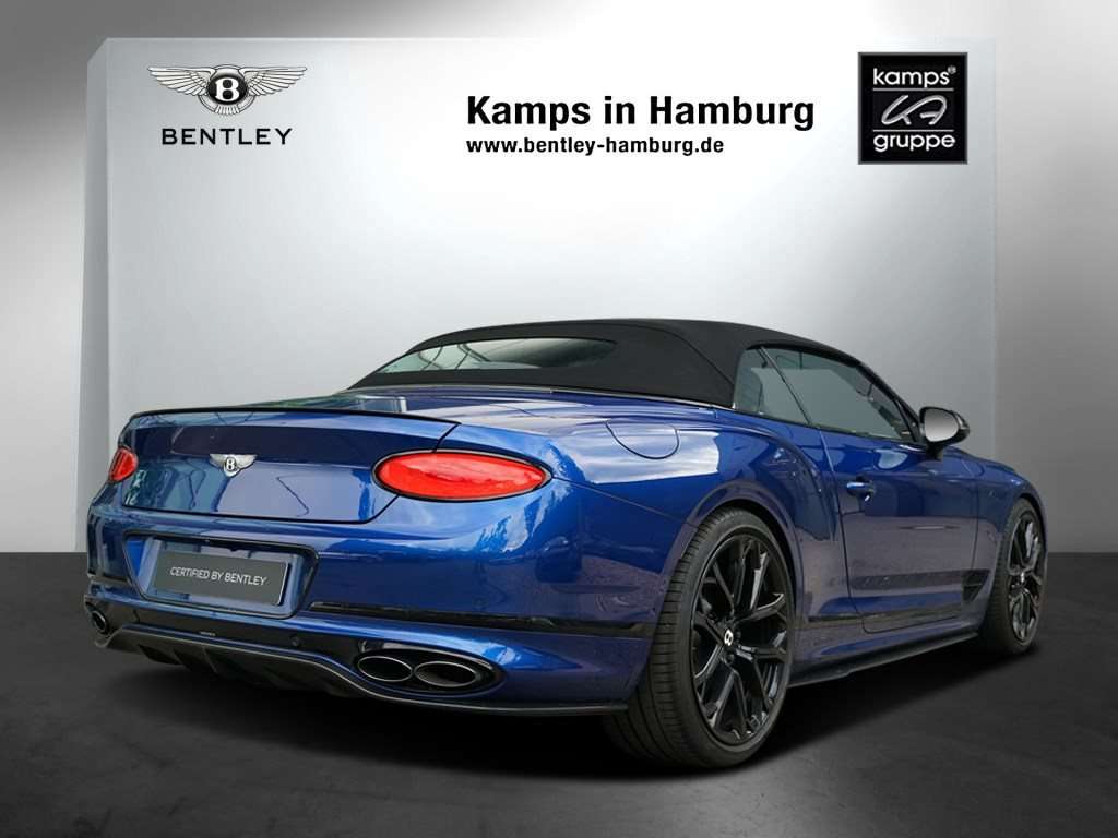 gBeluga Herzlich Willkommen bei Bentley Hamburg - dem größten Bentley Showroom Europas! Vielen Dank für Ihr Interesse an unseren exklusiven Produkten.Als offizieller Bentley-Händler verfügen wir über ein umfangreiches Angebot an Neu-, Bestell- und Fahrzeugen aus Vorbesitz. Bentley Continental GTC S V8 Außenfarbe: Sequin Blue Innenfarbe: Hotspur & Beluga Veneer: Piano Black Zu der umfangreichen Serienausstattung besitzt dieses Fahrzeug noch folgende Sonderausstattungen: Extended Range - Solid and MetallicContrast Binding to Carpet OvermatsLeather Specification with Diamond QuiltingContrast Gear Lever and Steering Wheel Spokes - by MullinerLED Welcome LampsTouring SpecificationFront Seat Comfort SpecificationSports PedalsChrome Pinstripe to Fascia and Door WaistrailsDeep Pile Overmats - FrontNaim for Bentley BentleyRotating DisplayDigital TV Tuner (in Addition to Digital Radio)Remote Controlled Garage Door OpenerContrast StitchingColour SpecificationDiamond KnurlingMood Lighting SpecificationStyling Specification22" Ten Spoke Sports Wheel - Black Painted Änderungen, Irrtümer und Zwischenverkauf vorbehalten.
