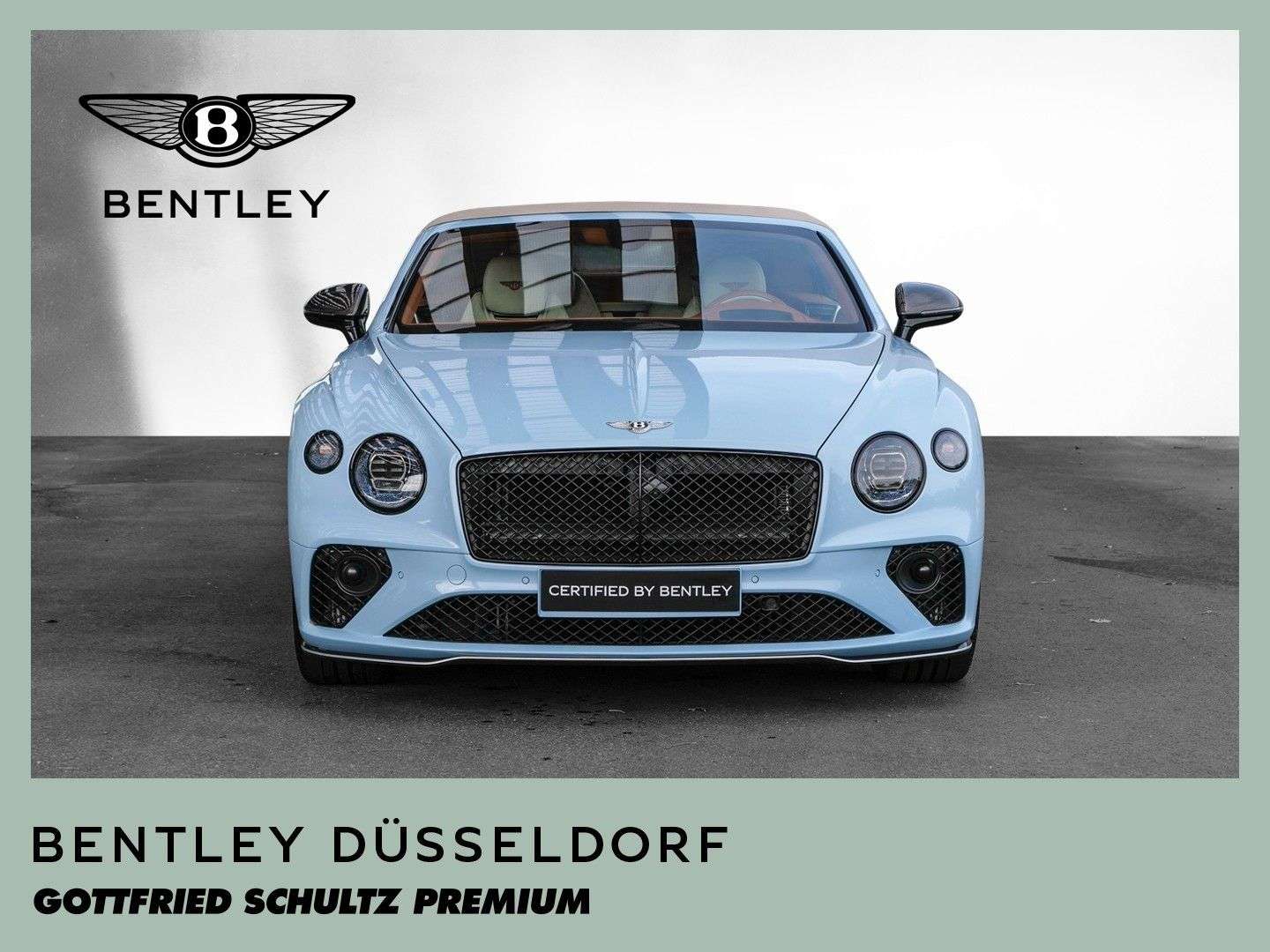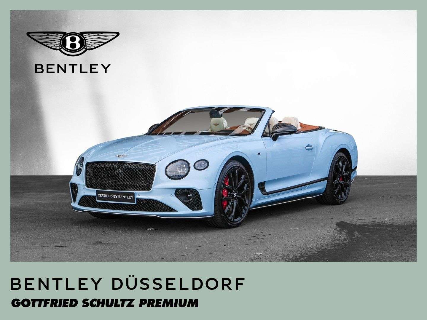 des Fahrzeuges: DüsseldorfBentley Continental GTC S V8 Fahrzeug aus VorbesitzFarbkombination:Außenfarbe: Jetstream II (babyblau)Hauptleder: Linen (beige)Zweitleder: Newmarket Tan (braun)Furnier: Carbon FibreSonderausstattung:Extended Range Lackierung in Jetstream II22“ Leichtmetallsportfelge im 10-Speichen-Design, schwarz lackiertSelbstnivellierende Bentley Embleme auf den FelgenAußendachfarbe in TweedCarbonaußenteile mit Jetstream II Akzenten versehenTouring Specificationyling SpecificationColour SpecificationKomfortausstattung für die VordersitzeSitzflächen und Türeinlagen in Leder mit DiamantsteppungFurnier in High Gloss CarbonSitzgurte in KontrastfarbeKreuzstichnähte – by Mullinerzusätzliche “Diamant-Riffelung” der LüftungseinlässeAmbientebeleuchtung inkl. beleuchtete Einstiegsleistehochflorige Fußmatten mit Ledereinfassung vorneFußmatteneinfassung in Kontrastleder3-Speichen Lederlenkrad, 2-farbig, beheizbar, mit geprägtem LederSportpedalerieLED Bodenbeleuchtung mit Bentley-Emblem vor Türen„NAIM for Bentley“ Highend AudiosystemMulliner Tankverschluss und ÖleinfülldeckelRotierendes Display, 3-FachGaragentoröffner, 3-fachBatterieladezustanderhaltungsgeräteinschlagschutzfolie (Front)Carbon Spiegelkappen...Änderungen, Zwischenverkauf und Irrtümer vorbehalten.