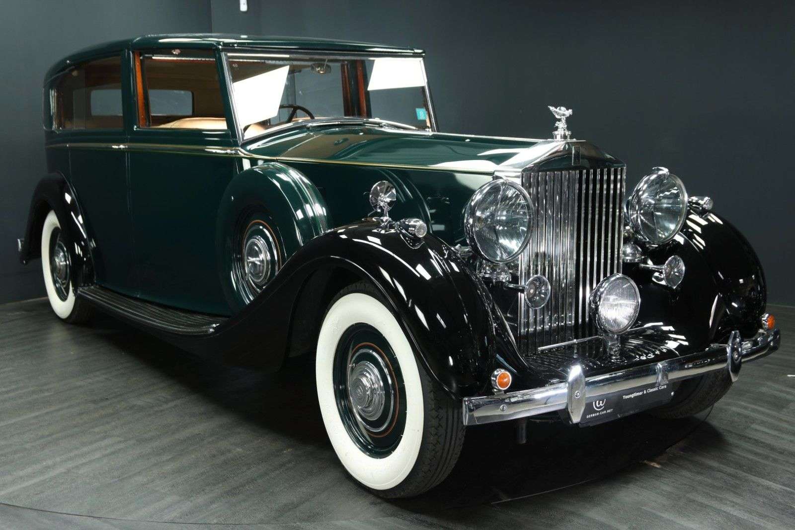 bung In den Jahren 1936 bis 1939 sind 727 Exemplare des großartigen Rolls-Royce Phantom III gebaut worden. Wir dürfen hier aus langjährigem sitz diesen 1938er Phantom III im Auftrag der Eigentümerin anbieten.Dieses Fahrgestell mit der Nummer 3DL88 wurde im Rolls-Royce Werk in Derby am 11. August 1938 zu ersten Testfahrten genutzt. Noch ohne Aufbau.Am 15.8.1938 ist dann das Chassis zu H.J Mulliner Ltd. zur Anfertigung der Karosserie geliefert worden. Die Design-Nummer lautet 6194, die Aufbaunummer 4595. Schon damals war die Farbgebung dunkelgrün mit schwarz und Leder hellbraun.Der steller des Fahrgestells war der Händler John Croal & Sons aus Edingburgh, Schottland, denen die Karosserie Firma H.J. Mulliner zu dem Zeitpunkt sogar gehörte. Vom 13. bis 22. Oktober 1938 stand unser Phantom III auf der Earls Court Show in London (Stand 94).Dort konnte der Wagen die Bronzemedaille gewinnen für den phantastischen Aufbau ! Im Messekatalog und der britischen Zeitschrift "The Autocar" ist dieser Rolls-Royce damals ausführlich besprochen worden.Die Qualität der Arbeit von H.J. Mulliner war so hoch, dass Rolls-Royce diesen trieb 1959 übernommen hat.Nach der Messe hat der große Rolls-Royce Händler Jack Barclay aus London den Wagen übernommen und ihn am 17.12.1938 an Sidney E. Parkes für zu der Zeit atemberaubende Summe von GBP 3.008,- verkauft. Dieser Herr Parkes nutzte den Phantom bis 1952.Wir verfügen über ein Foto der original Zeichnung vom Karosseriehersteller und ein Foto des Neuwagens von Jack Barclay LTD, sowie Kopien der Neuwagenrechnung.Im Jahre 1987 wurde unser Wagen aufwändig restauriert und präsentiert sich auch heute noch in wunderschönem Zustand !Die letzten Jahre ist der Wagen für zahlreiche Touren genutzt worden und hat sich als äußerst zuverlässig erwiesen. Der letzte such in einer bekannten Fachwerkstatt fand im Juni 2025 statt. Dabei sind unter anderem sowohl die Reifen, als auch der TÜV erneuert worden.Die zahllosen Ausstattungsdetails sind geradezu atemberaubend ... es gibt bei diesem Luxus Automobil derart viele Extras zu entdecken, das es eine wahre Freude ist:Eine Bar mit zwei Flaschen, acht kleine cher (mit der eingravierten Fahrgestellnummer !), Weißwandreifen (im Juni 2025 erneuert), eine elektrische Trennscheibe, Sprechanlage, um dem Fahrer Anweisungen zu geben, zu öffnende Seitenscheiben hinten, klappare Zusatzsitze im Fond, vorziehbare, abgedunkelte Seitenscheiben, Signalhorn in zwei Lautstärken, integrierte Wagenheber, Leseleuchten, Bordwerkzeug, Bordbuch ..... u.s.w., u.s.w.Die Detailverliebtheit hat uns begeistert - und lange beschäftigt.Der Phantom III ist das letzte Modell, das noch die Handschrift von Henry Royce trägt. Von den 727 fertiggestellten Phantom III schätzt man hätten ungefähr 650 Exemplare bis heute überlebt, was den Stellenwert dieses Modells unterstreicht. Das Nachfolgemodell ist deutlich rarer mit nur 18 gebauten Phantom IV, von denen aktuell noch 16 bekannt sind.Ein nahezu baugleicher Phantom III ist als "Phoebe the Phantom" im fernen Australien bekannt.1987 hat unser Phantom beim "1987 Federal Concourse d`Elegance" den ersten Preis erhalten !Die Ausstattung ist unglaublich vielseitig inklusive Trennscheibe, Gegensprechanlage, Bar, (neuen) Weißwandreifen, hinteren Ausstellfenstern, Radio, Leseleuchten, hinterer Mittelarmlehne, zwei (drehbaren !) Klappstühlen im Fond, etc.Für weitere Fragen und Informationen zu diesem Juwel oder für einen sichtigungstermin rufen Sie uns gern an oder schreiben uns eine E-Mail.Telefon: 0 46 24 - 803 1933E-Mail: niels.baumann@german-car.net BordmappeEs ist das Handbuch vorhanden plus zwei Ordner voller Rechnungen und diverser Dokumente, die dem Käufer ausgehändigt werden.Die angegebene Laufleistung ist lediglich abgelesen. Der tatsächliche Kilometerstand ist unbekannt.Zwischenverkauf und Irrtümer für dieses Angebot sind ausdrücklich vorbehalten. Die Fahrzeugbeschreibung dient lediglich der allgemeinen Identifizierung des Fahr